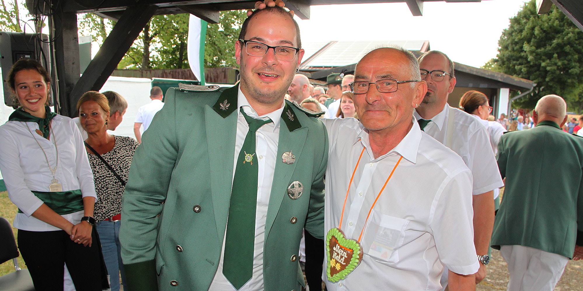 Ein väterlicher Klaps vom Präsidenten: Johannes Kursch (r.) gratulierte dem neuen Schützenkönig Dominik Reibold.