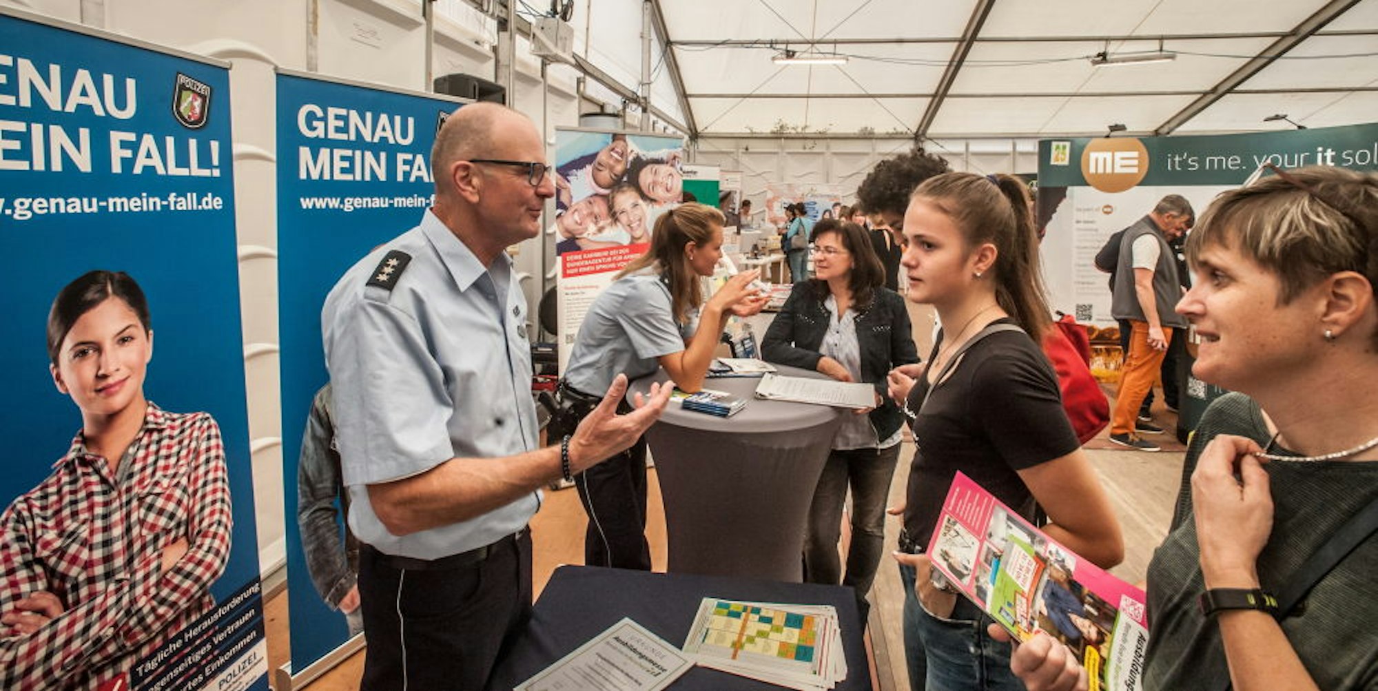 „Es gibt hier sehr viele gute konzeptionelle Ansätze“, lobte Bürgermeister Stefan Caplan. „Zum Beispiel, dass die Messe samstags stattfindet. Das ist eines der Erfolgskriterien.“ Auf diese Weise erreichen die Veranstalter – die Stadt Burscheid und die KJA Burscheid - die Jugendlichen, die wirklich an den Berufen interessiert sind. „Das sind hier keine durchgeschleusten Klassen“, betonte Caplan.