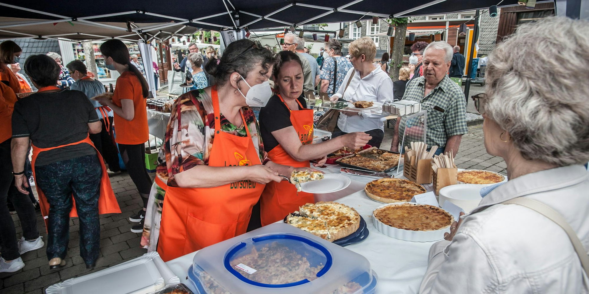 Da wurde es an einigen Stellen auf der Hauptstraße zwischen Marktplatz und Kirchenkurve schon etwas ungewohnt eng. Zwar gilt in Nordrhein-Westfalen – darauf hatte die Stadt Burscheid zunächst auch ausdrücklich hingewiesen – nach der aktuellen Corona-Schutzverordnung noch immer eine Maskenpflicht im Freien „in Warteschlangen und Anstellbereichen sowie unmittelbar an Verkaufsständen“, doch scherte das in Burscheid die Wenigsten.