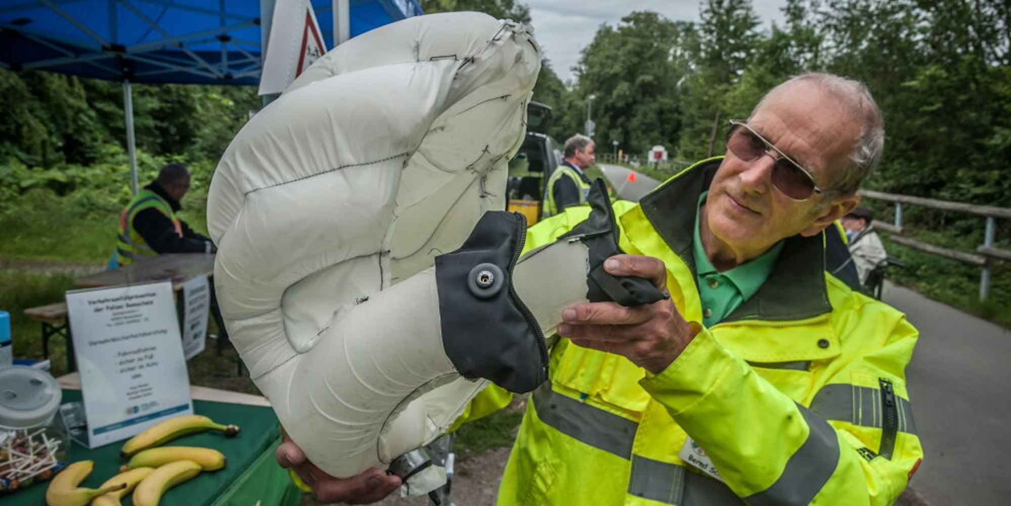 Einen Airbag für den Kopf demonstrierte Bernd Schäfer.