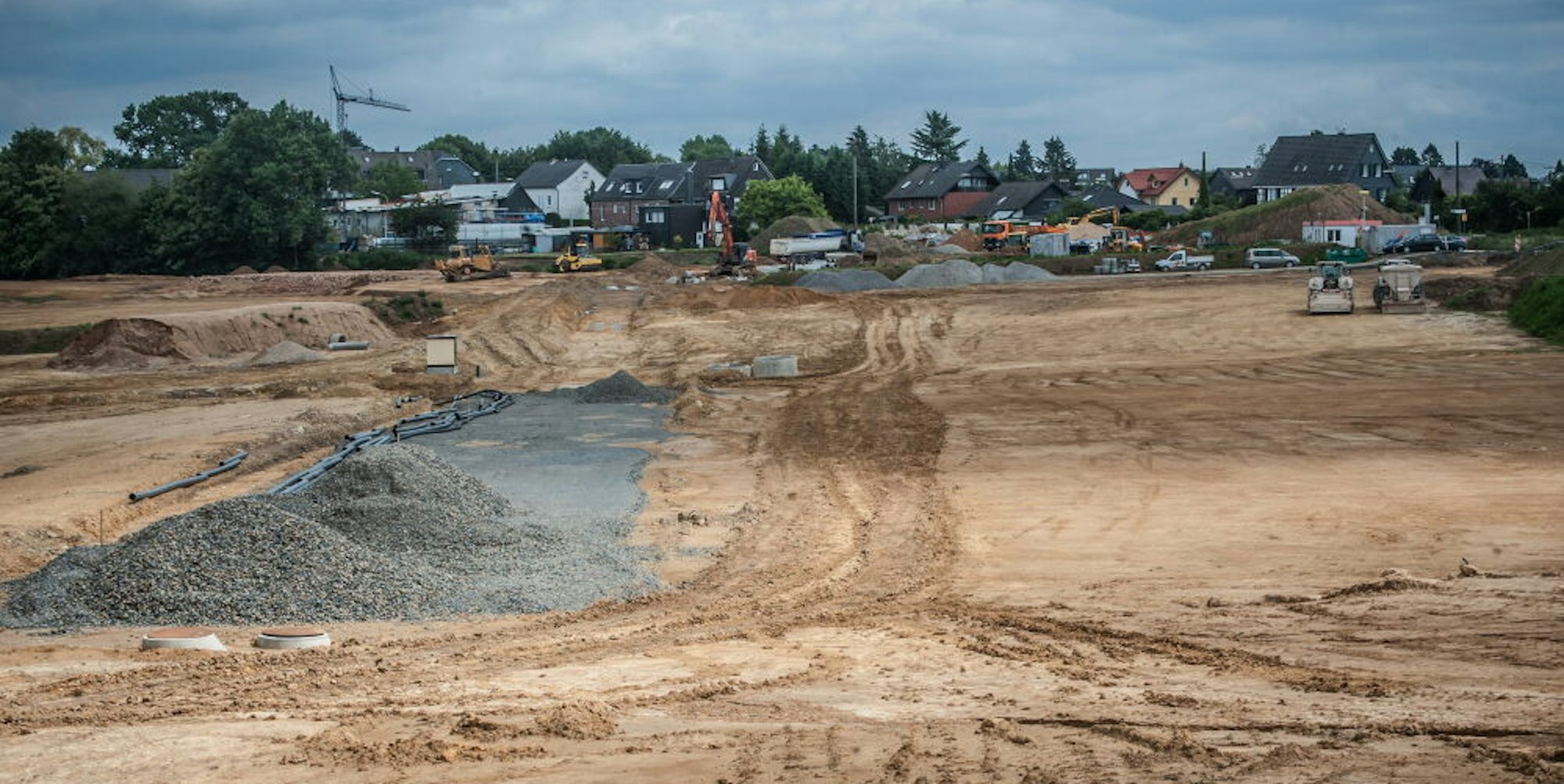 Burscheid – Wer über die B 51 zur Stadtgrenze nach Leverkusen fährt, sieht derzeit eine Mondlandschaft, auf der sich Planierraupen, Bagger und Lastwagen wie fleißige Insekten tummeln. Eine Baustellenampel regelt den Verkehr.