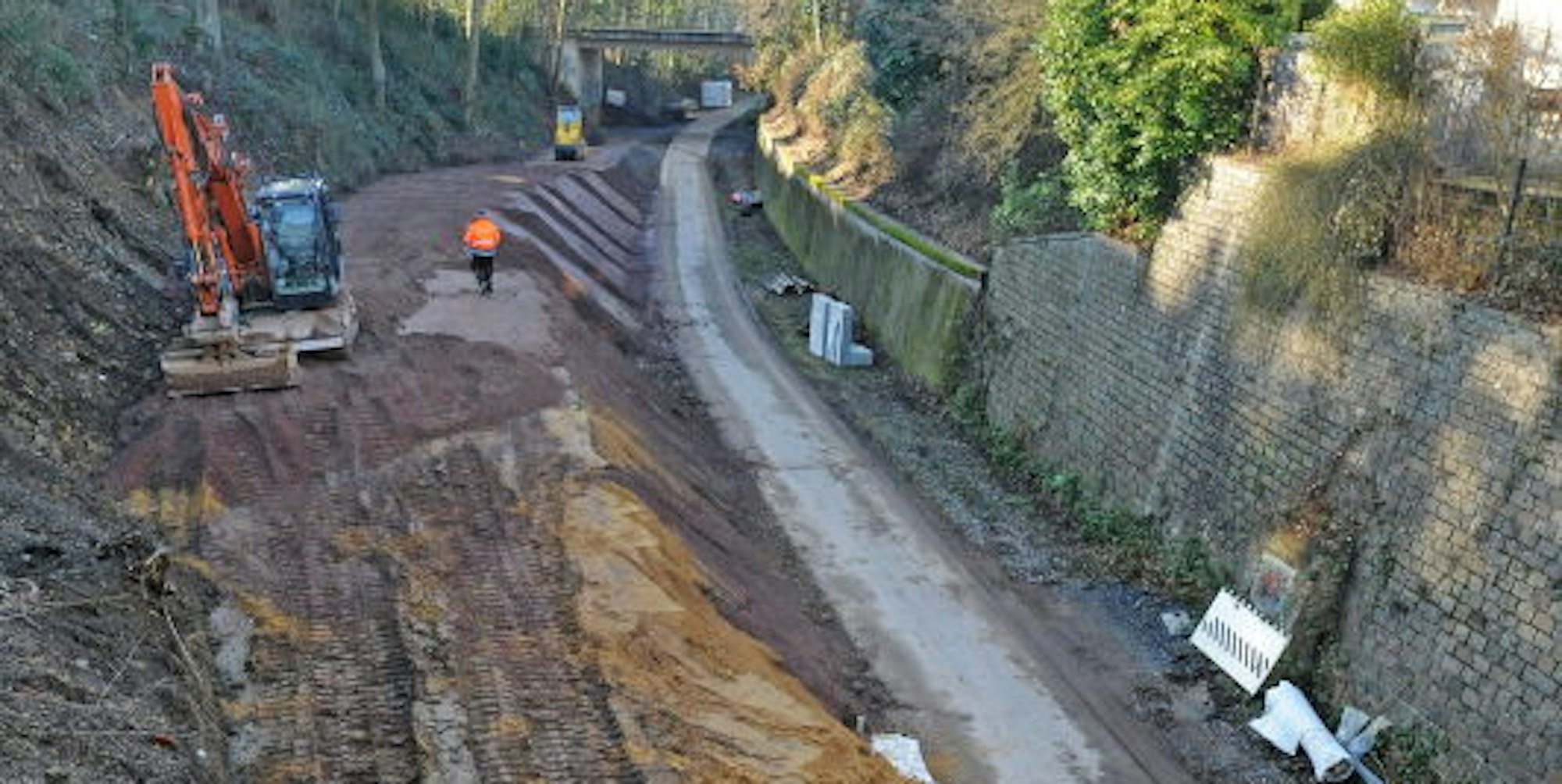 Die Arbeiten an der Rampe zur Balkantrasse in Burscheid nehmen nach der Weihnachtspause Fahrt auf. Die Fertigstellung ist für das Frühjahr geplant.