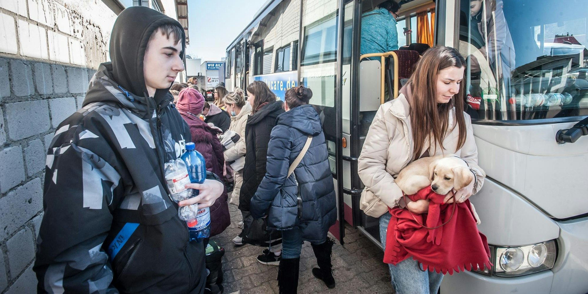 „Dann haben sie bei mir angerufen und wollten einen Bus für den Transport mieten“, erzählt Unternehmer Rainer Hüttebräucker. „Nix mieten, habe ich da gesagt, den stelle ich so zur Verfügung, inklusive zwei Fahrern.“ So brach ein Konvoi mit einem Bus und mehreren Kleintransportern am vergangenen Samstag Richtung Polen auf. Und zurückkommen sollte er nicht leer, sondern mit 75 Menschen, die Zuflucht suchen.