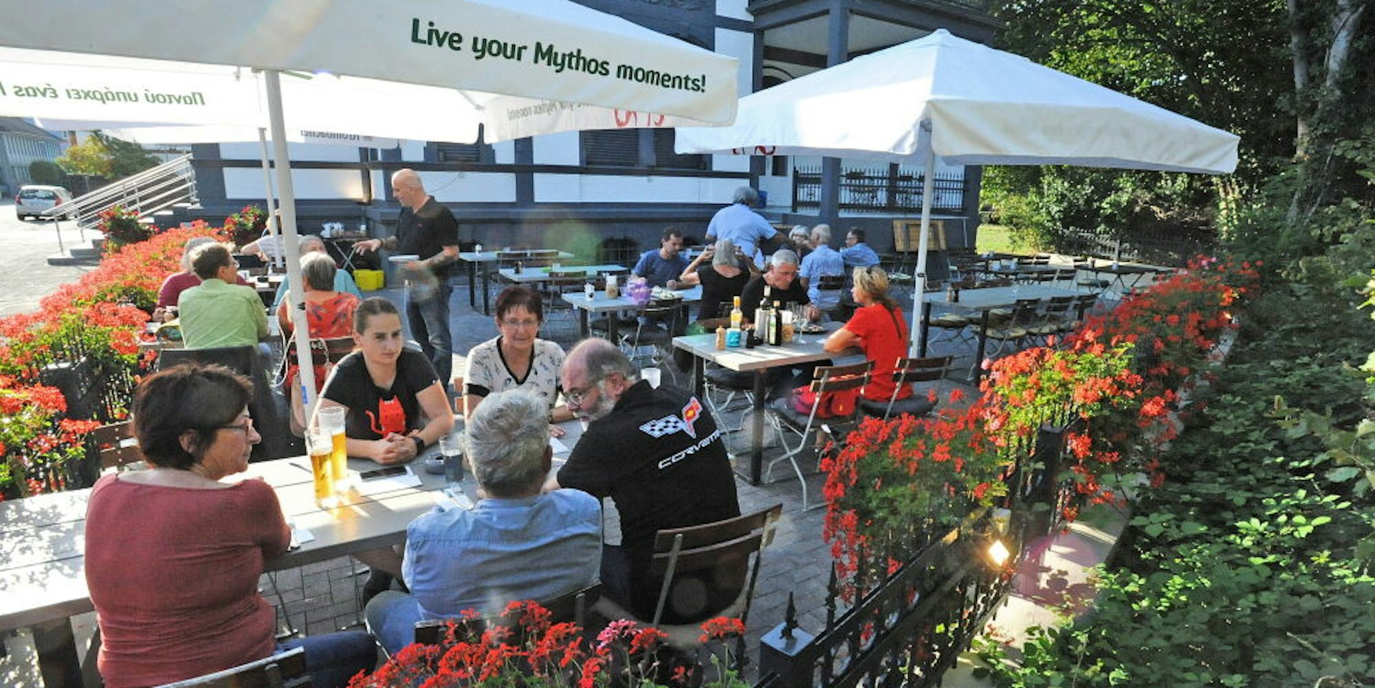 Im vergangenen Jahr konnte Zacharias Karapantsios (51), der das Restaurant nach dem Tod seines Vaters mit seinem gleichnamigen Cousin übernommen hat, einen lange gehegten Traum verwirklichen und einen Biergarten eröffnen: Sie haben den Hof neben der Villa Kronenberg gemietet – nun kann man dort auf 90 Plätzen bei schönem Wetter draußen mit Corona-Abstand sitzen. Mit den Tabletts müssen sie seitdem abends immer über die Hochstraße laufen. Einheimische Autofahrer wissen das und halten gerne an, für die anderen haben die Gastwirte Warnschilder aufgestellt – Vorsicht: Kellner kreuzen!