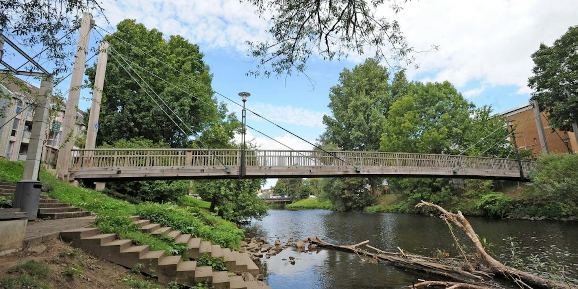 Leichlingen – Bis Ersatz für die morsche und deswegen seit Oktober 2019 gesperrte Henley-Brücke da ist, wird es noch lange dauern. Wahrscheinlich erst, wenn der neue Supermarkt an der Neukirchener Straße fertig ist, kann sie eröffnet werden, nicht vor 2022. Denn so lange blockiert die Großbaustelle für das Pässler-Projekt den Zugang zum Ufer. Aber die von Fußgängern und Radfahrern herbeigesehnte Brücke nimmt zumindest auf dem Papier jetzt Formen an: Es soll eine Stab-Bogenbrücke aus Stahl werden.