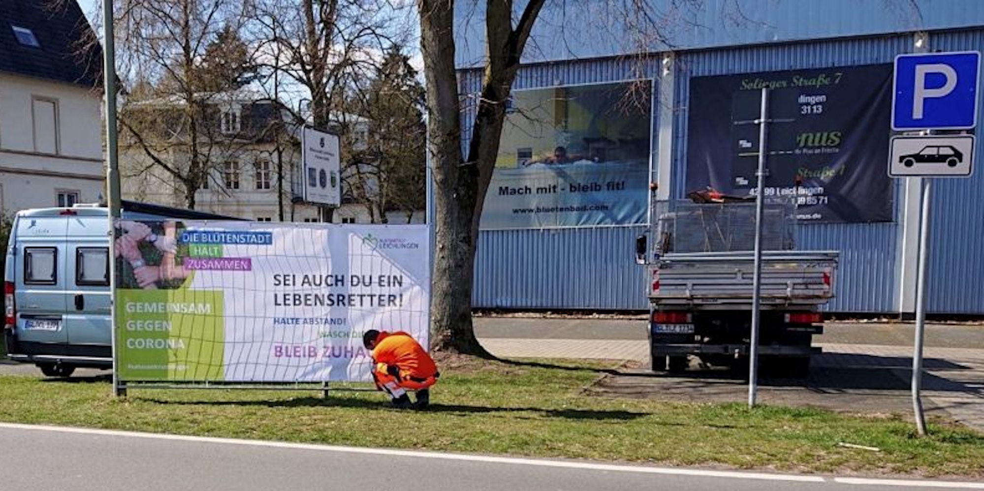 Leichlingen – Wer es noch nicht begriffen hat, dass Ausgangsbeschränkungen und Hygienevorkehrungen im Kampf gegen das Coronavirus lebenswichtig sind, wird in Leichlingen jetzt mit großen Plakaten darauf gestoßen. Die Stadtverwaltung hat am Dienstag eine Informations-Kampagne mit eigens hergestellten Bannern gestartet, auf denen der Appell „Sei auch Du ein Lebensretter!“ steht.
