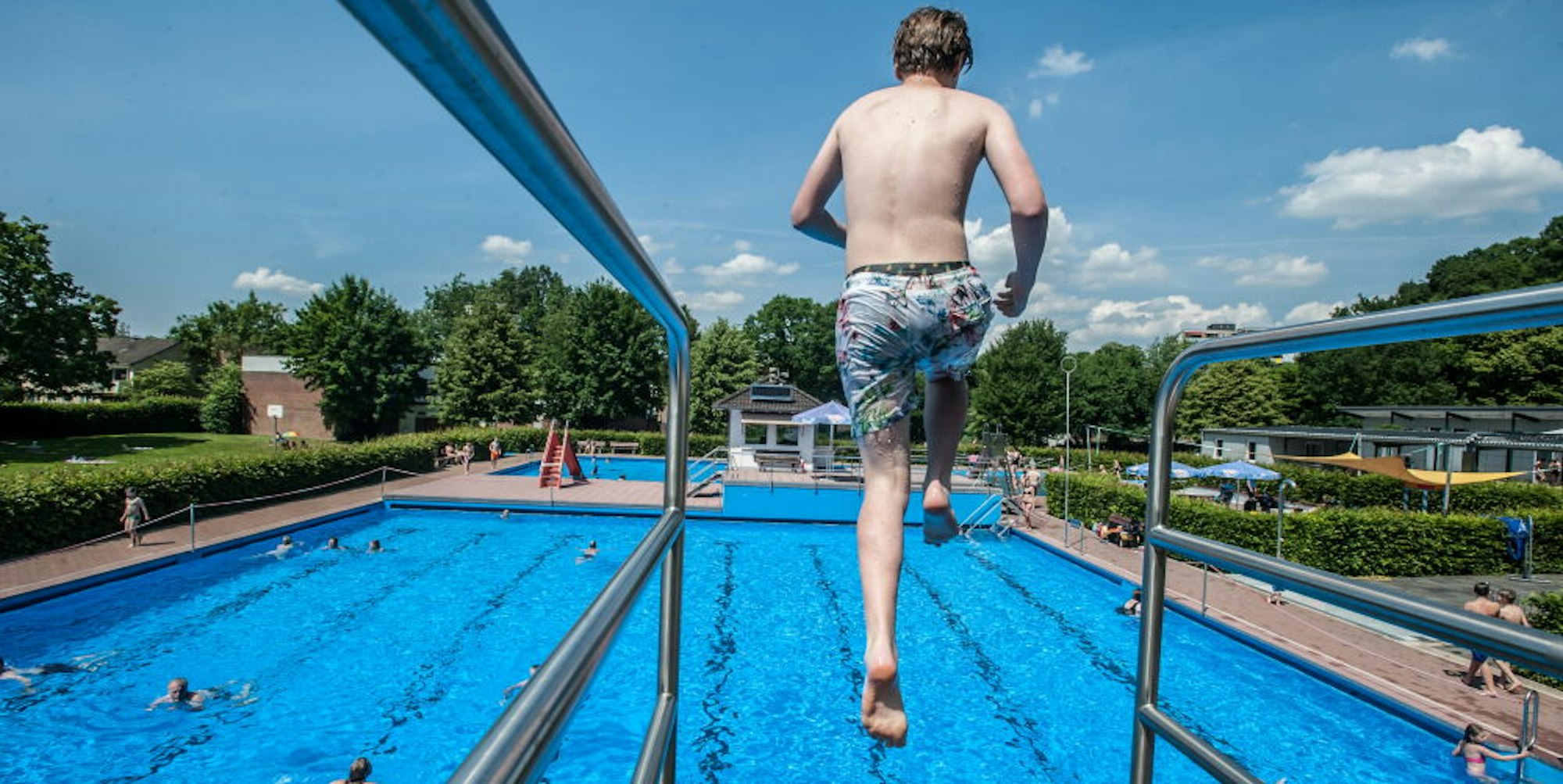 Der Sprungturm mit Drei-Meter-Brett soll erhalten, das Nichtschwimmerbecken (hinten) halbiert werden.