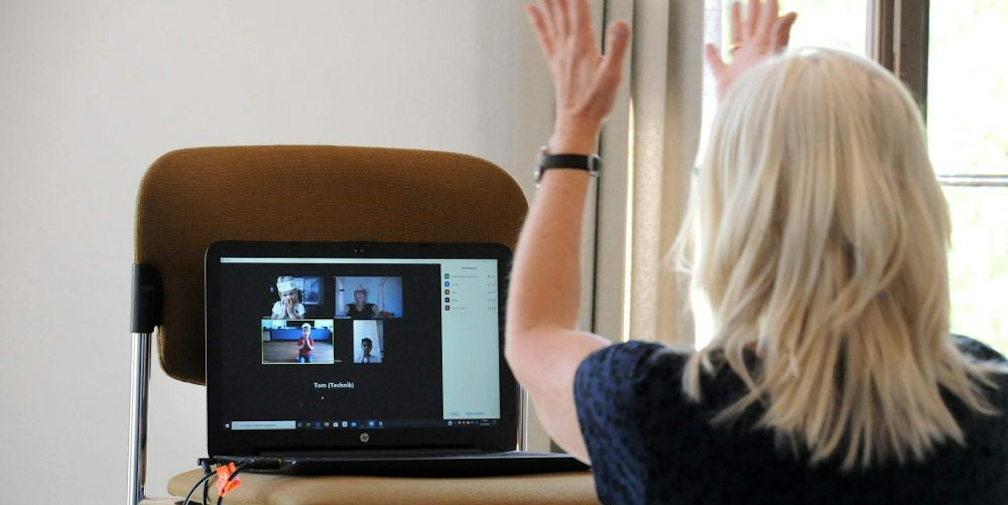 Sie ist aufgrund des Kontaktverbots im Zuge der Corona-Pandemie allein im Raum. Über die Video-Kommunikations-App Zoom ist sie aber mit ihren Schülern, vier bis sechsjährigen Kita- und Vorschulkindern, für gut 30 Minuten in ihren Kinderzimmern verbunden – online. „Auch hier lernen sie das Hören, Hineinhören. Wir schulen das Gehör.“