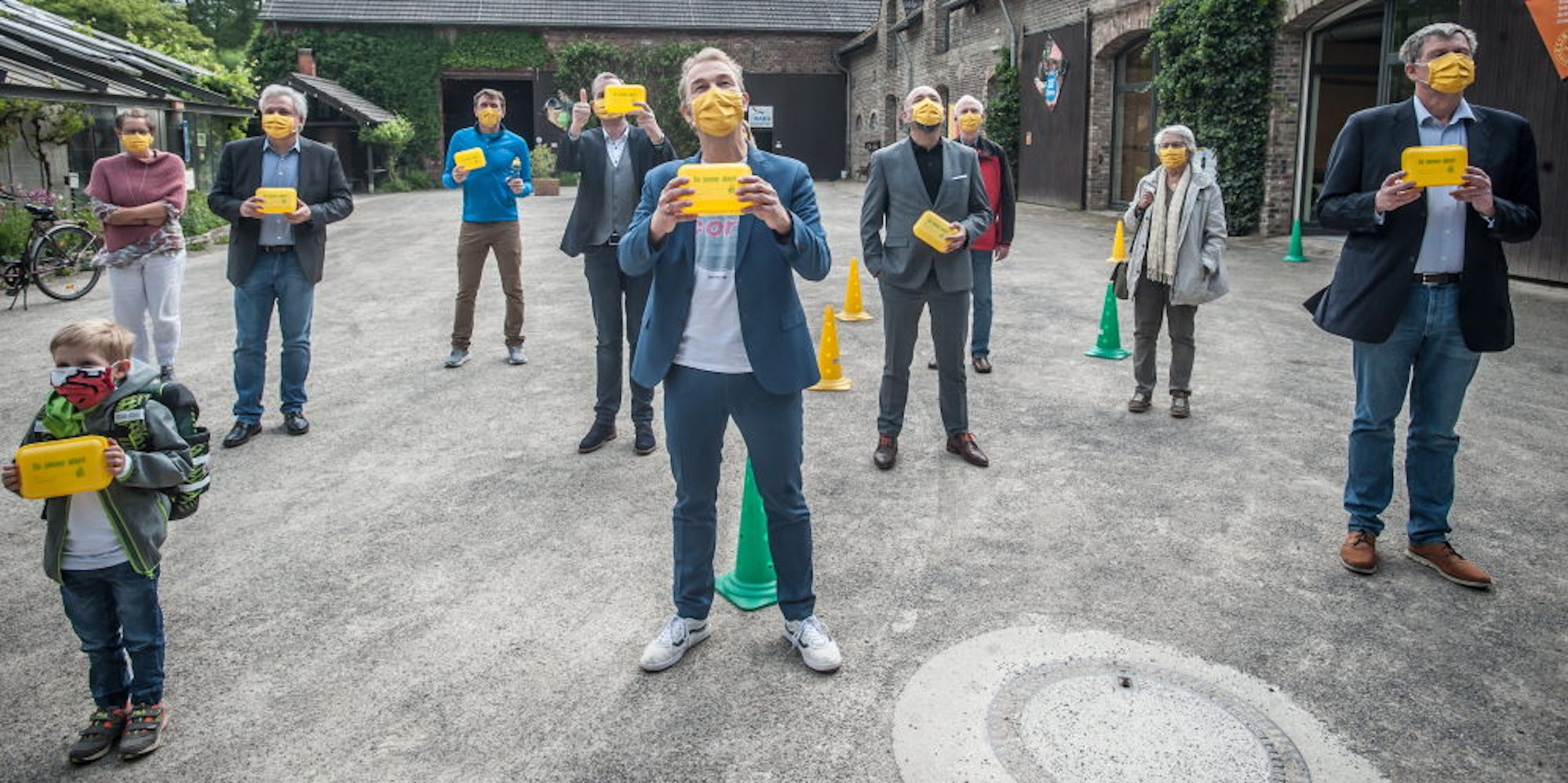Pressetermin am Naturgut: Beim Foto mit Gesichtsmasken ist das Lächeln zwar da, aber es versteckt sich. Zur Verabschiedung verbeugt man sich leicht voreinander.