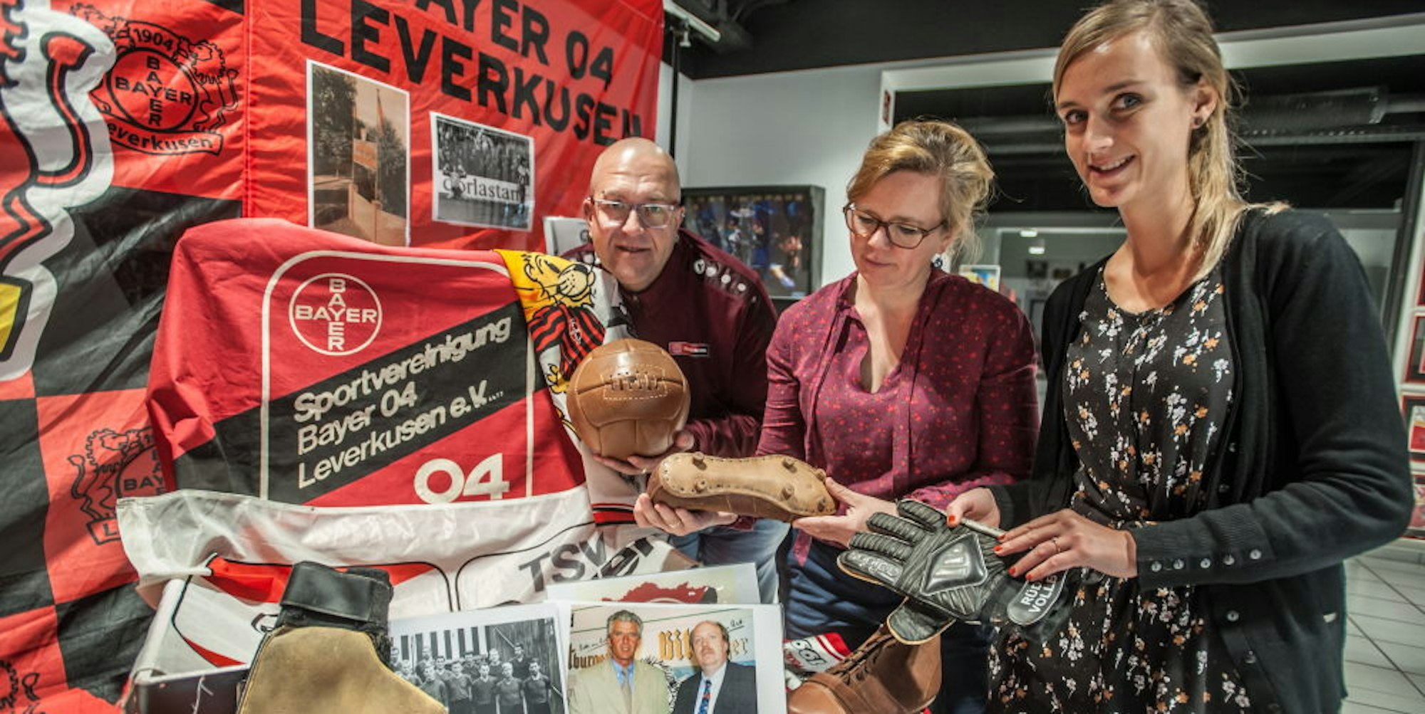 Leverkusen – Der Tisch ist vollgepackt mit Relikten aus der Historie des Fußballvereins Bayer 04 Leverkusen. Bälle, Fußballschuhe, Mannschaftsfotos, Trikots, Eintrittskarten. „Ganz schön viel für einen angeblich traditionslosen Verein“, sagt Fanbeauftragter Andreas Paffrath, der von allen nur liebevoll Paffi genannt wird. „Da sieht man: Wir haben sehr viel Geschichte!“