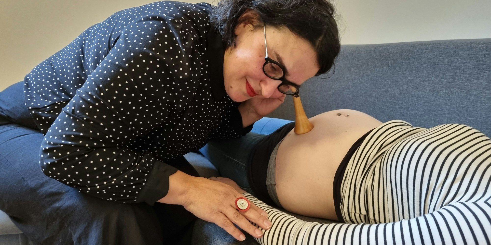 Emine Bodenstein untersucht den Bauch einer Schwangeren. Viel Zeit kann sie nicht für die ersten Wochenbettbesuche abrechnen.