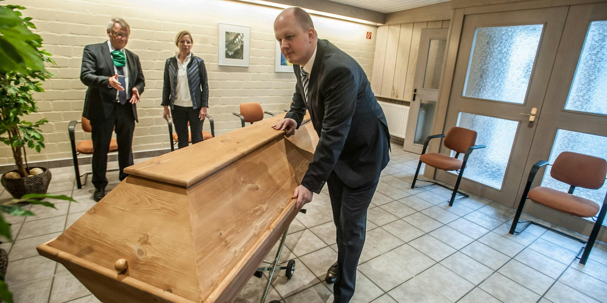 Leverkusen – Von einem geliebten Menschen Abschied zu nehmen, ist niemals leicht. Sich nun auch in Corona-Zeiten mit veränderten Bestimmungen und Einschränkungen auseinanderzusetzen, macht es nicht leichter. Nur „der engste Familienkreis“ war bislang bei einer Beerdigung erlaubt. „Für viele Leute ist es schwierig, neben der Trauer um den verstorbenen Angehörigen die Entscheidung zu treffen: »Tut mir leid, ihr seid diejenigen, die nicht teilnehmen dürfen.«“, erklärt Maximilian Bertram. Der 32-Jährige ist Bestatter in vierter Generation, seit 1923 gibt es das Unternehmen mit der aktuellen Zentrale in Wiesdorf. Anfangs als Schreinerei und Beerdigungsinstitut gegründet, konzentrierte sich die Familie im Laufe der Jahrzehnte auf Bestattungen.