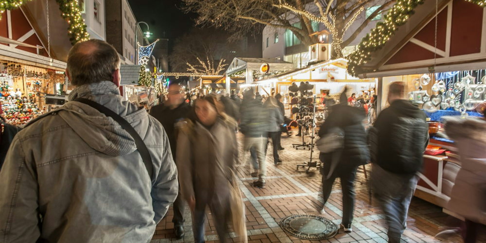 Die Besucher auf den Weihnachtsmärkten – wie hier in Wiesdorf – folgen ganz verschiedene Herangehensweisen.