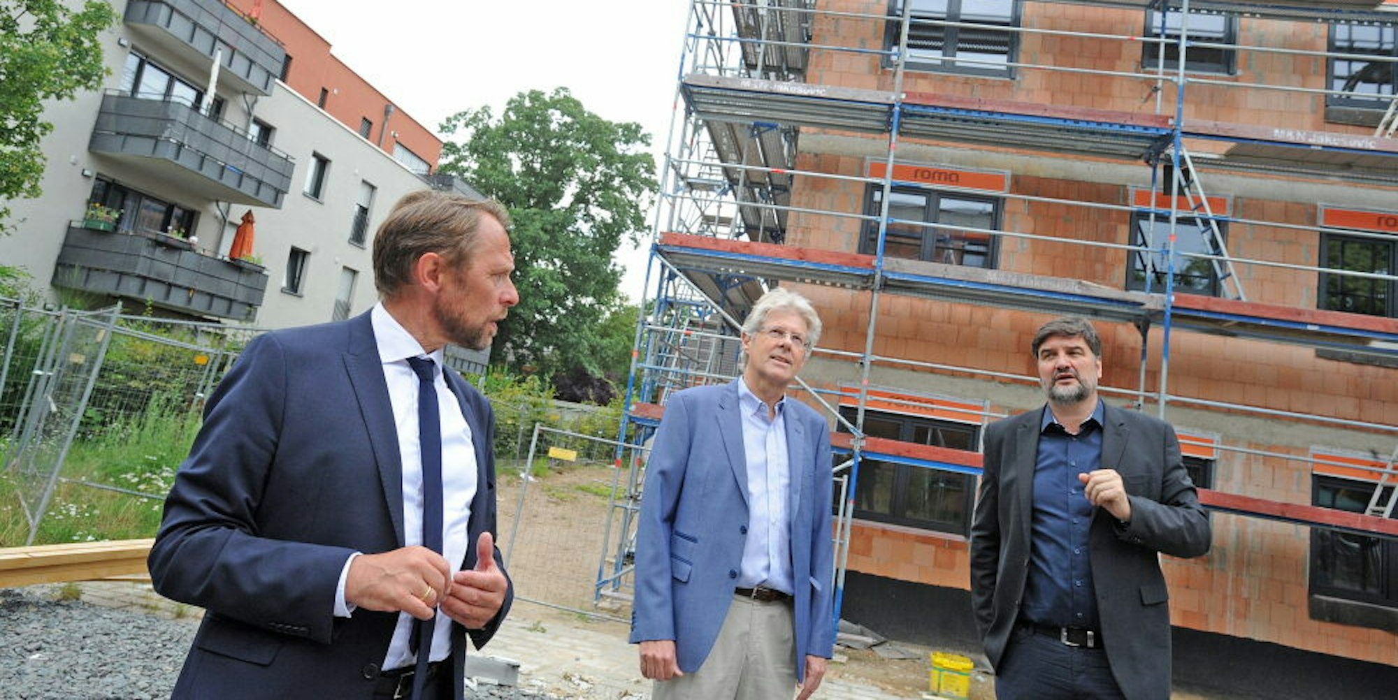 Für Andreas Kölsch (rechts) ist es der zweite Streich. Der Architekt hat auch die Nachbarhäuser gebaut. Uwe Richrath (links) und Wolfgang Mues sind recht zufrieden.
