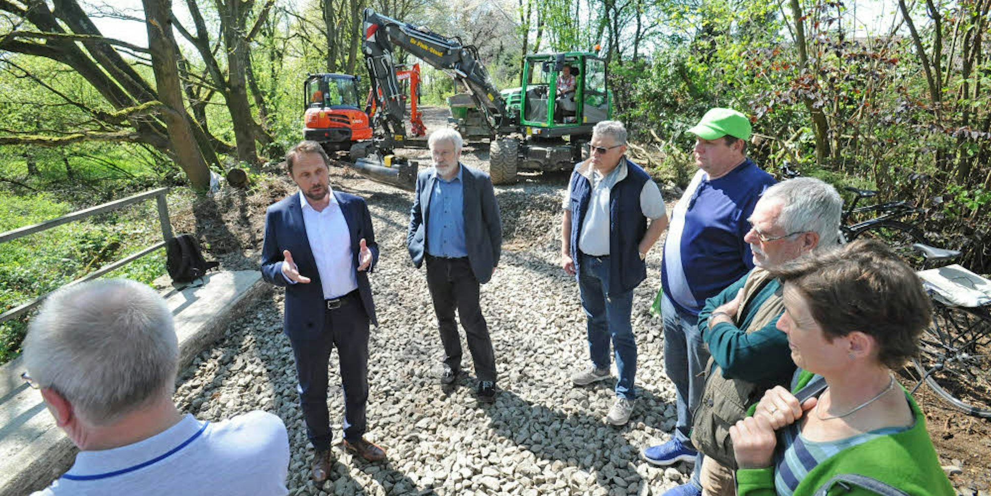 Oberbürgermeister Uwe Richrath vollzog am Gründonnerstag gemeinsam mit TBL-Chef Wolfgang Herwig und dem Förderverein den offiziellen Baubeginn für die fehlenden restlichen 850 Meter Wegstrecke. Bis September soll die Balkantrasse komplett sein.