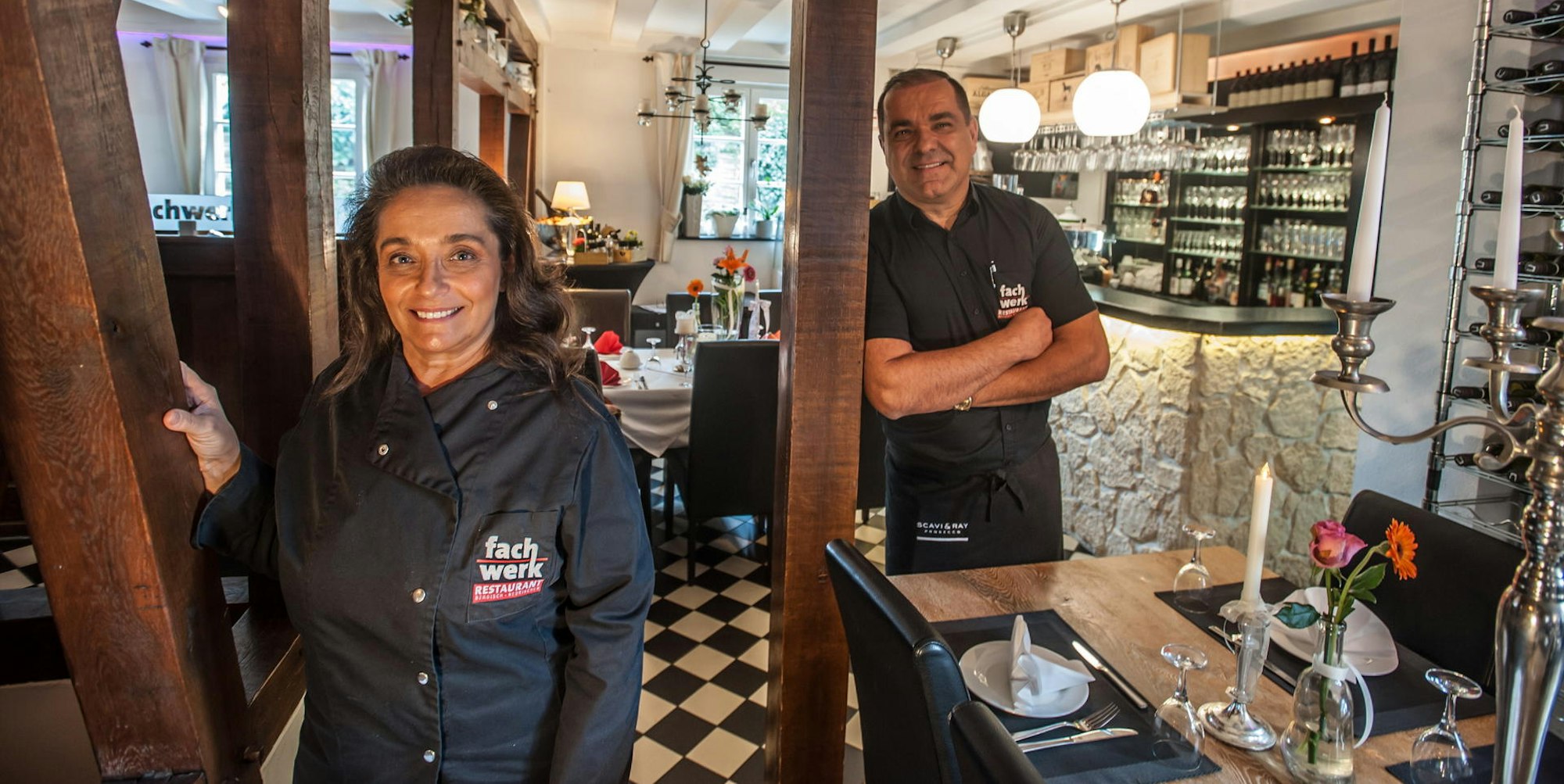 Leverkusen – Eine Mischung zu finden zwischen traditionell-bergischem und mediterranem Flair, darum ging es Dragan und Tajana Juric im „Fachwerk“ in Bergisch Neukirchen. „Fein, edel und schlicht“ sollte es sein, sagt Dragan Juric. Die Mischung ist dem Ehepaar gelungen. Gekocht wird nach dem Motto „frischer Fisch mit Spinat, Mangold, Kräutern und Olivenöl ist der Garant für ein langes und gesundes Leben.“