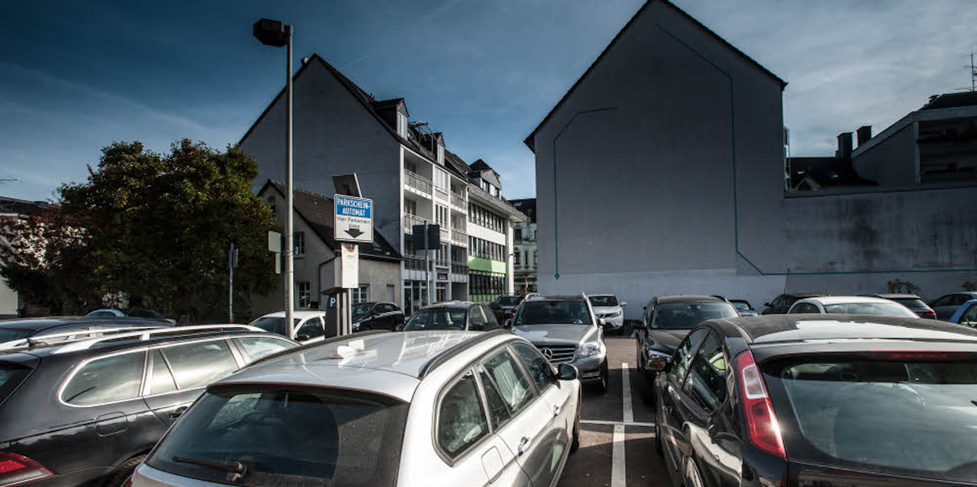 Die Parkplätze an der Kämpchenstraße in Opladen könnten für neue Wohnhäuser des Opladener Bauvereins künftig wegfallen.