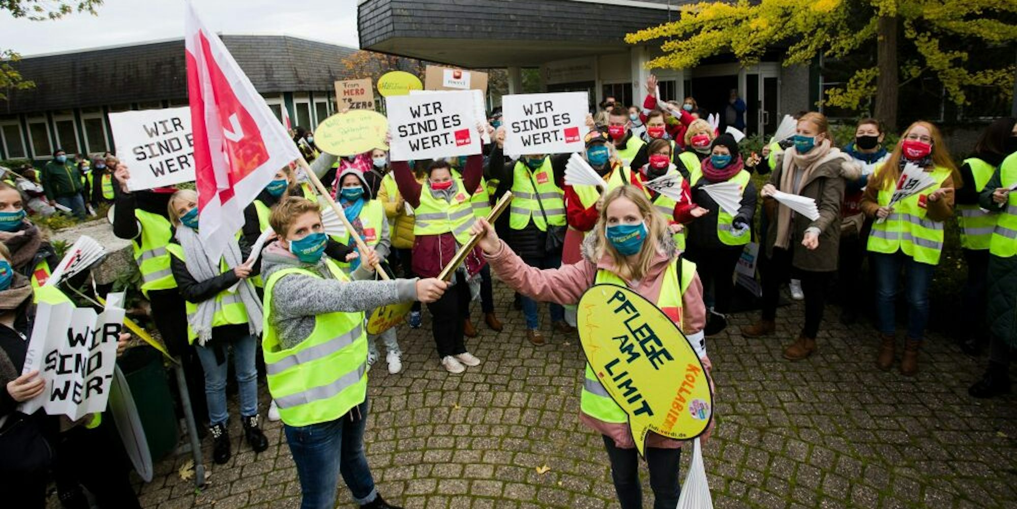 160 Pflegekräfte vor dem KrankenhausProtest des Klinikpersonals in Waldbröl