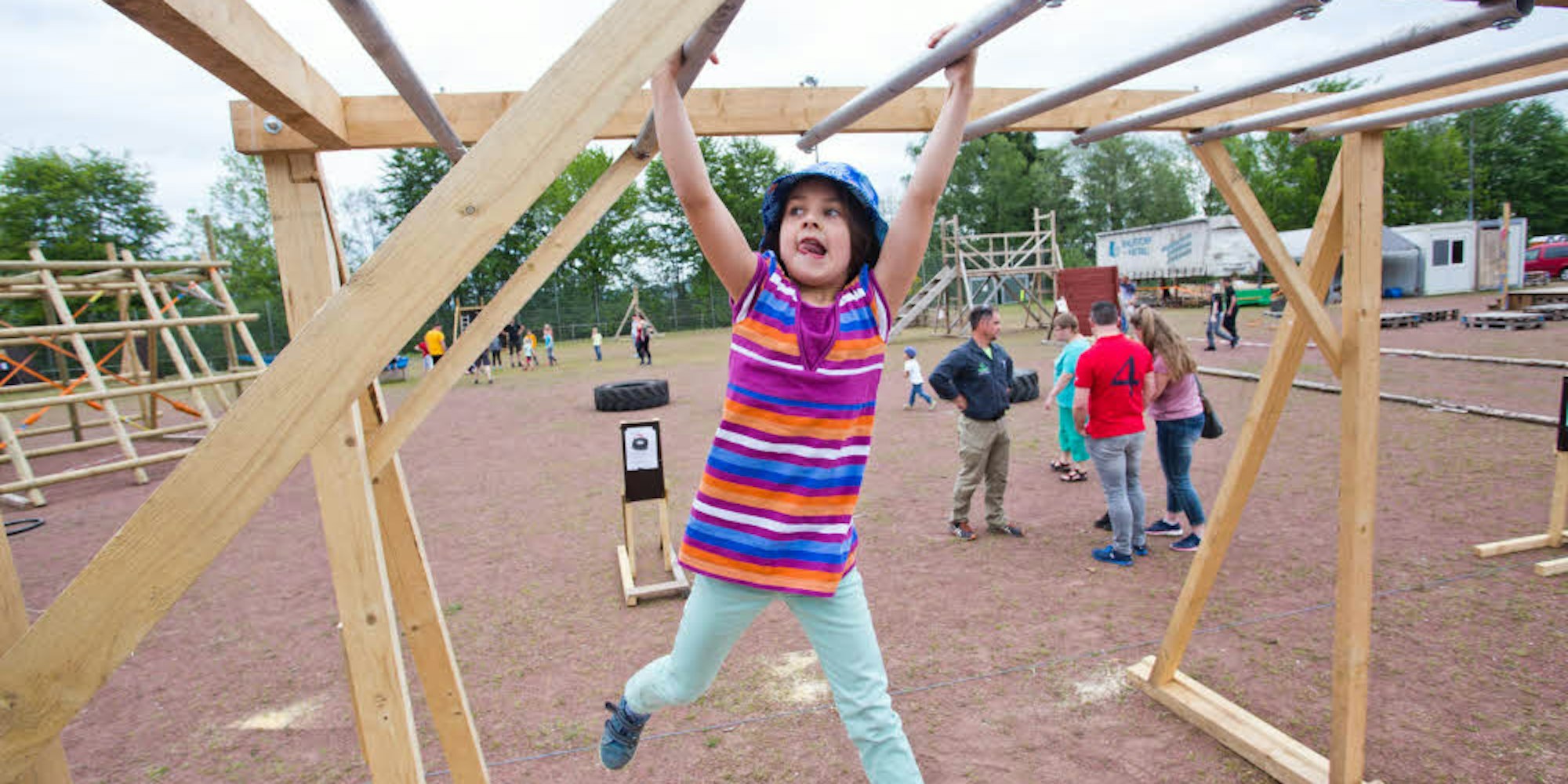 Nur nicht hängen lassen: Mit großem Eifer war auch diese junge Besuchern auf dem Hindernisparcours unterwegs.