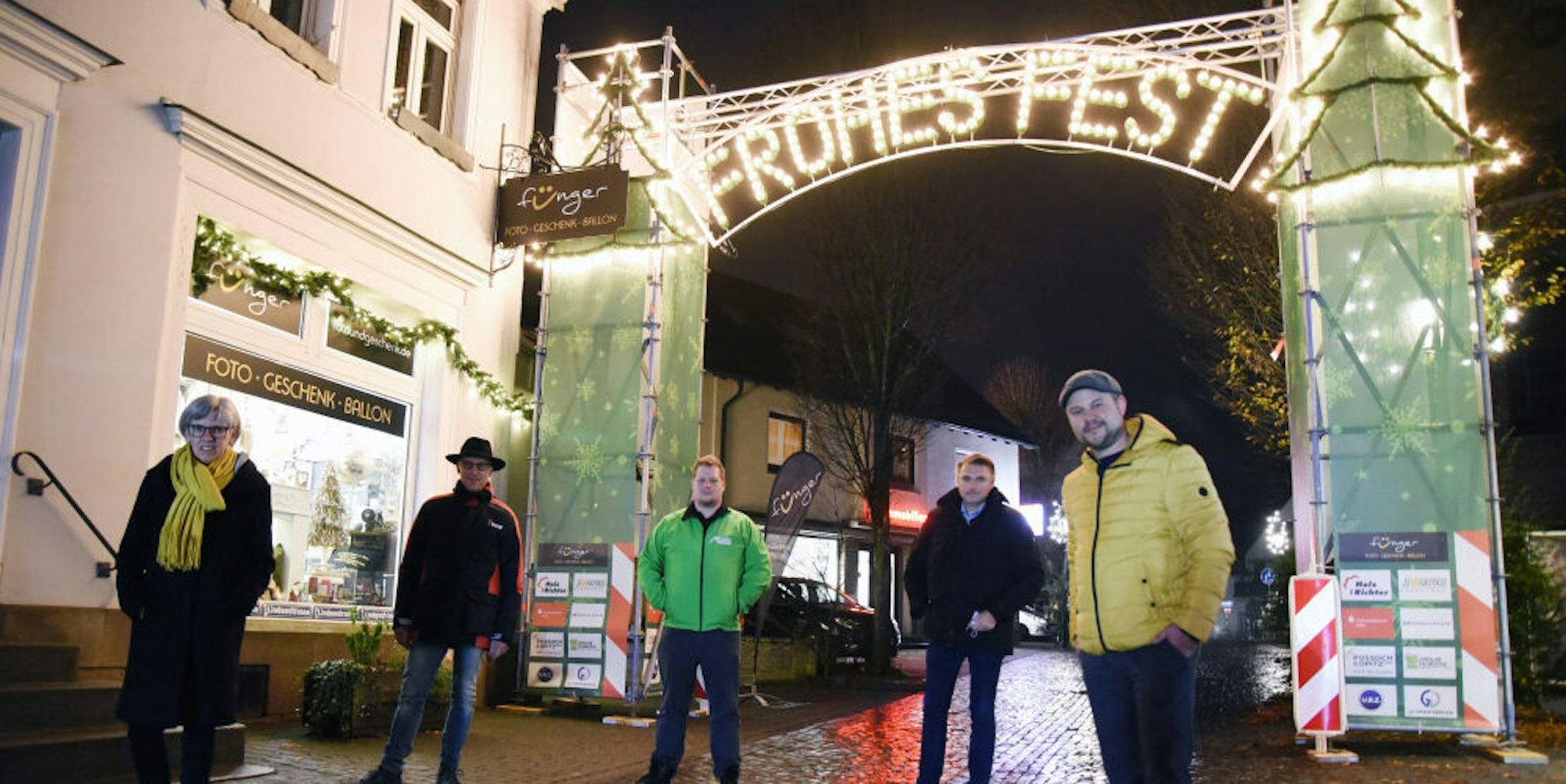 Der Lichtbogen aus der „Lindenstraße“ soll für Weihnachtsstimmung sorgen, der Weihnachtsmarkt ist abgesagt.