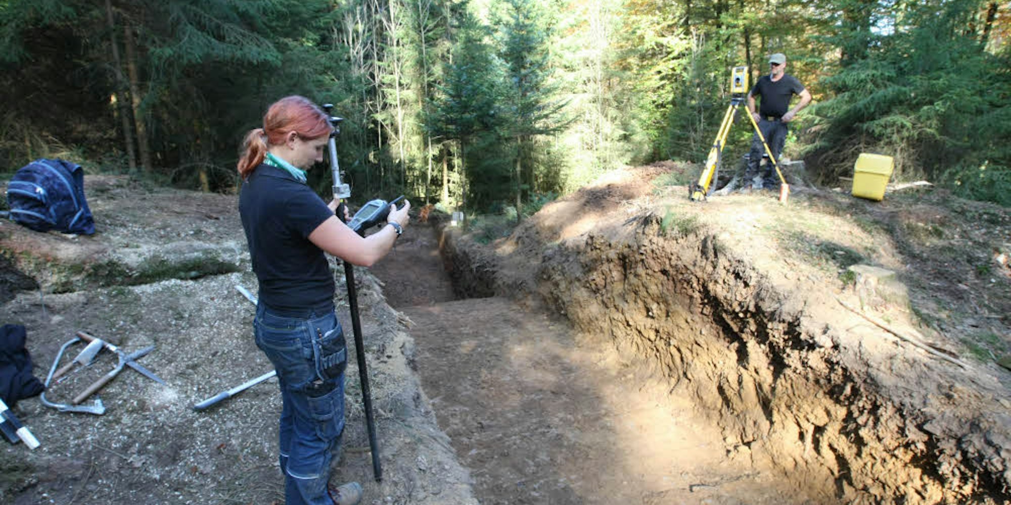 Interessanter wurde es für die Forscher am sogenannten Vorwall. Verschiedenfarbige Erdschichten lassen deutlich erkennen, wie er entstand: Aus einem Graben wurde das Erdmaterial entnommen und zum Wall aufgeschüttet. Zudem fanden die Forscher in der Erde klitzekleine Holzkohlepartikel, die bald im Labor untersucht werden. Balkowski: „Wir erhoffen uns, dass mittels der Radiokarbondatierung das Alter der Partikel bestimmt werden kann.“ Dabei wird der Zerfall von Isotopen bestimmt. Somit könnten die Forscher im besten Fall recht genau eingrenzen, wann der Wall entstand. Ins Labor eingeschickt werden auch Bodenproben.