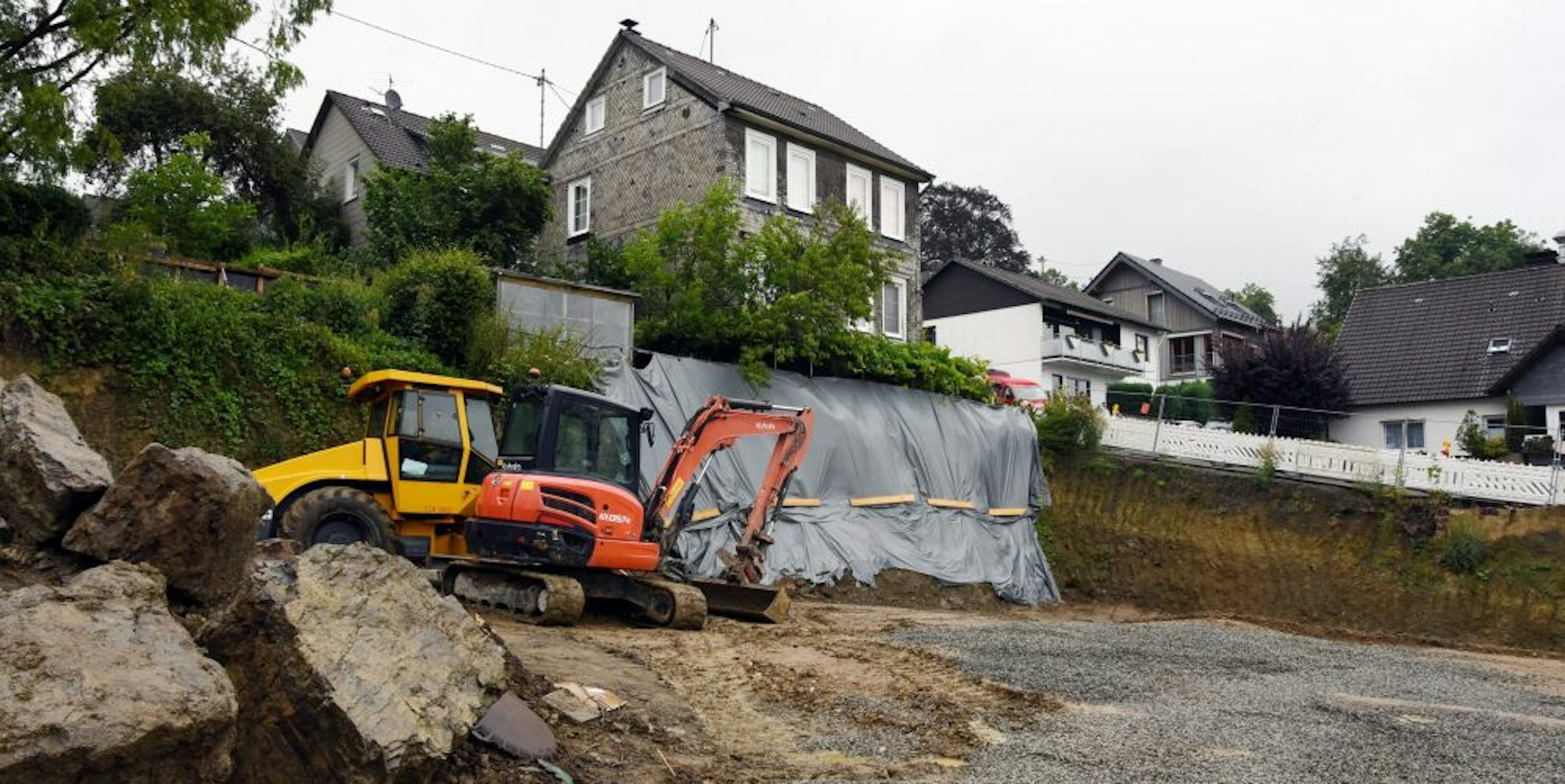 So sorgte der Kreis dafür, dass eine Fachfirma die Baugrube auffüllt und den Hang zum Nachbarhaus lagenweise wieder verdichtet. „Mit der Bauleitung haben wir einen Statiker beauftragt“, berichtet der Kreisbauamtsleiter weiter. Nach diesen Arbeiten sollte es keine Absturzgefahr mehr geben für das Haus.