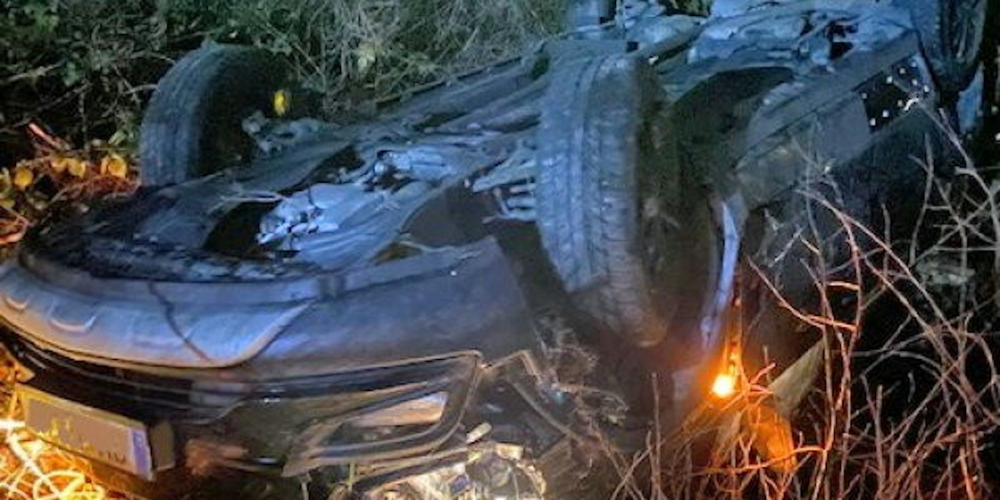 Der Pkw stürzte die Böschung hinab und blieb auf dem Dach liegen.