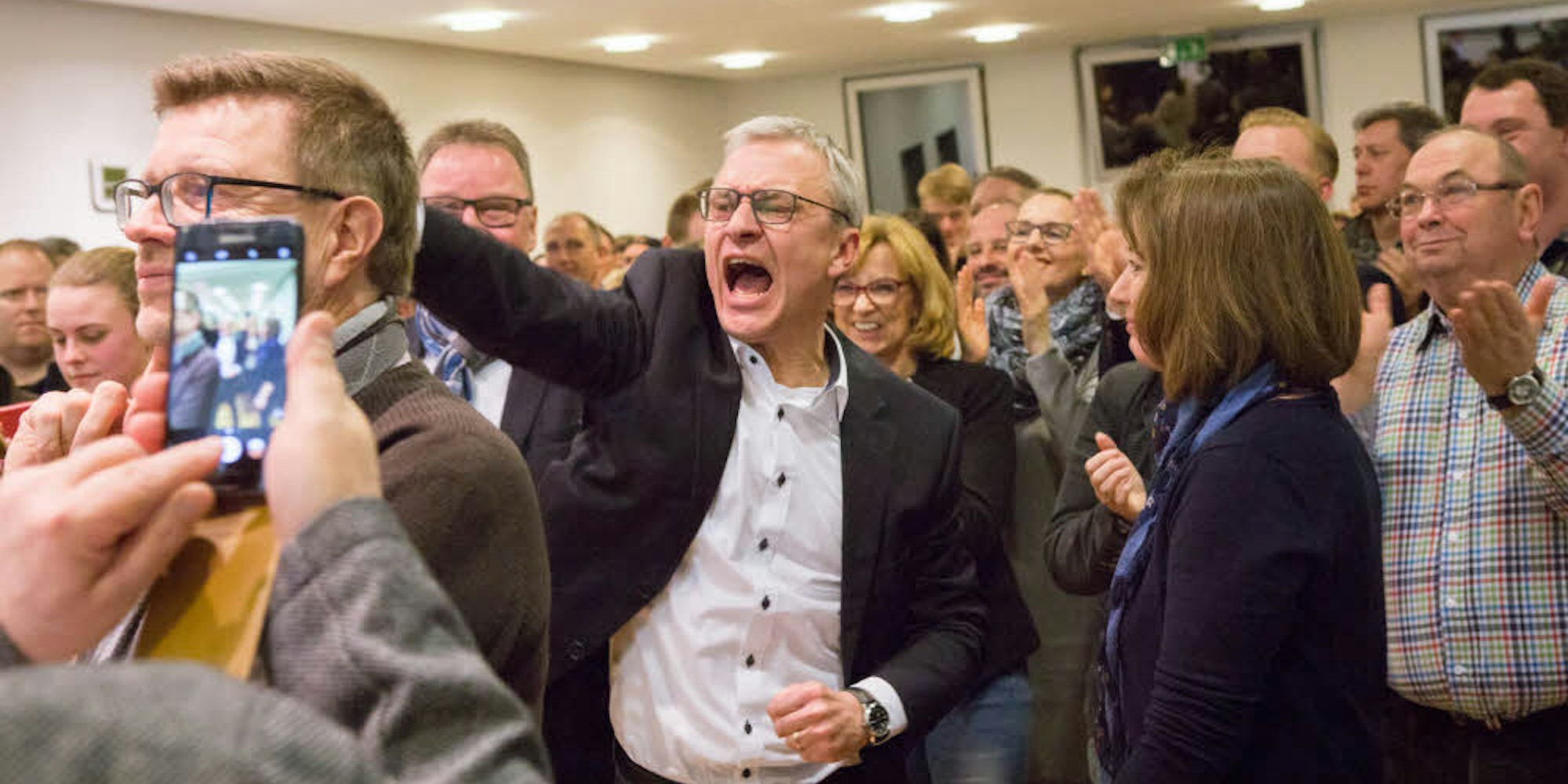 Lindlar – „Ja, Ja, Ja!“, bricht es aus Bürgermeister Dr. Georg Ludwig heraus, als um 18,55 das letzte Wahlergebnis einläuft und fest steht, dass er auch für die nächsten sieben Jahre erster Bürger der Gemeinde Lindlar ist. Applaus brandet auf, die ersten Gratulanten kommen.
