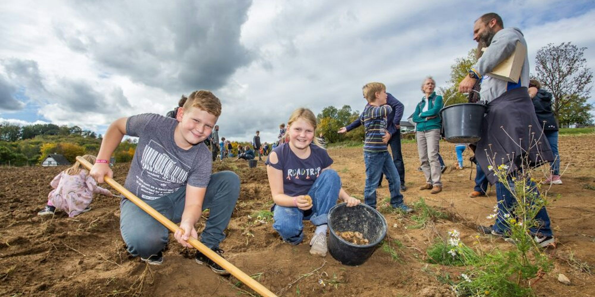 Beim Kartoffel ausmachen helfen Oliver und seine Schwester Katja.