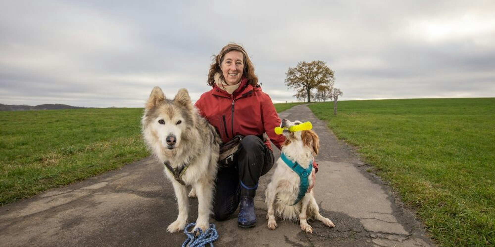 Training verboten: Hundetrainerin Claudia Landgrafe nutzt die Zeit, um mit ihren Hunden, dem elfjährigen Woody-Husky Dajan (l.) und dem achtjährige Englisch Setter Gioja, spazieren zu gehen. Die neuen Regeln im November versteht sie nicht.