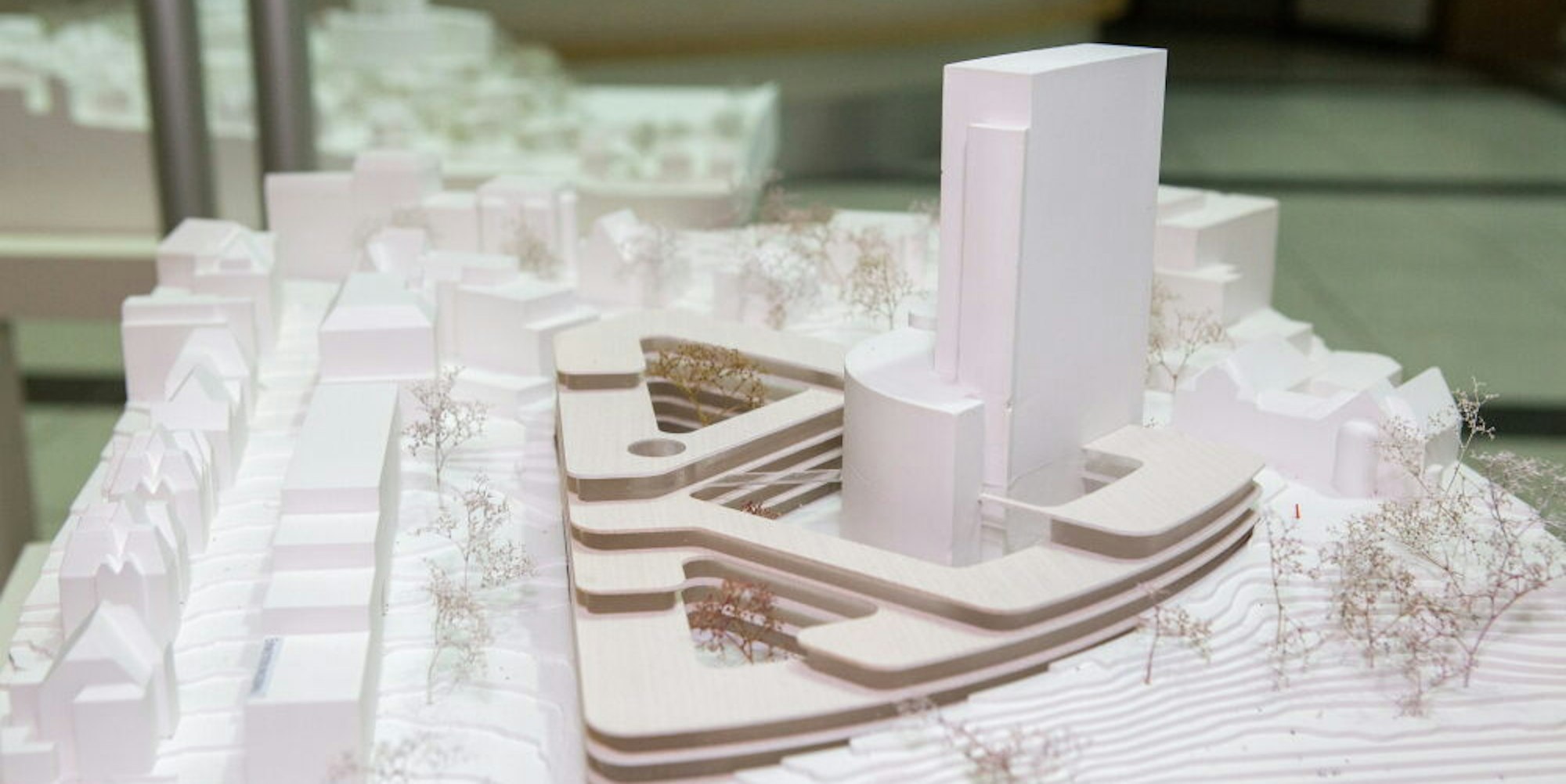 Am Abend des 22. Januar 2020 ahnte im Kreishausfoyer noch niemand etwas von der Gefahr, die da aus China auf die Welt zurollte. Fünf Fachpreisrichter und Vertreter der Kreispolitik hatten sich unter 15 eingereichten Vorschlägen für den des Berliner Büros Hascher Jehle Design entschieden. Der sieht vor, das Kreishochhaus mit zwei bis viergeschossigen Gebäuden einzurahmen. Kaum, dass die Umschläge mit den Wettbewerbssiegern geöffnet worden waren, wurden die drei Erstplatzierten informiert. Tags drauf gratulierte Felix Ammann ihnen telefonisch. Ammann ist Technischer Dezernent der Kreisverwaltung und federführend in Sachen Kreishauserweiterung .