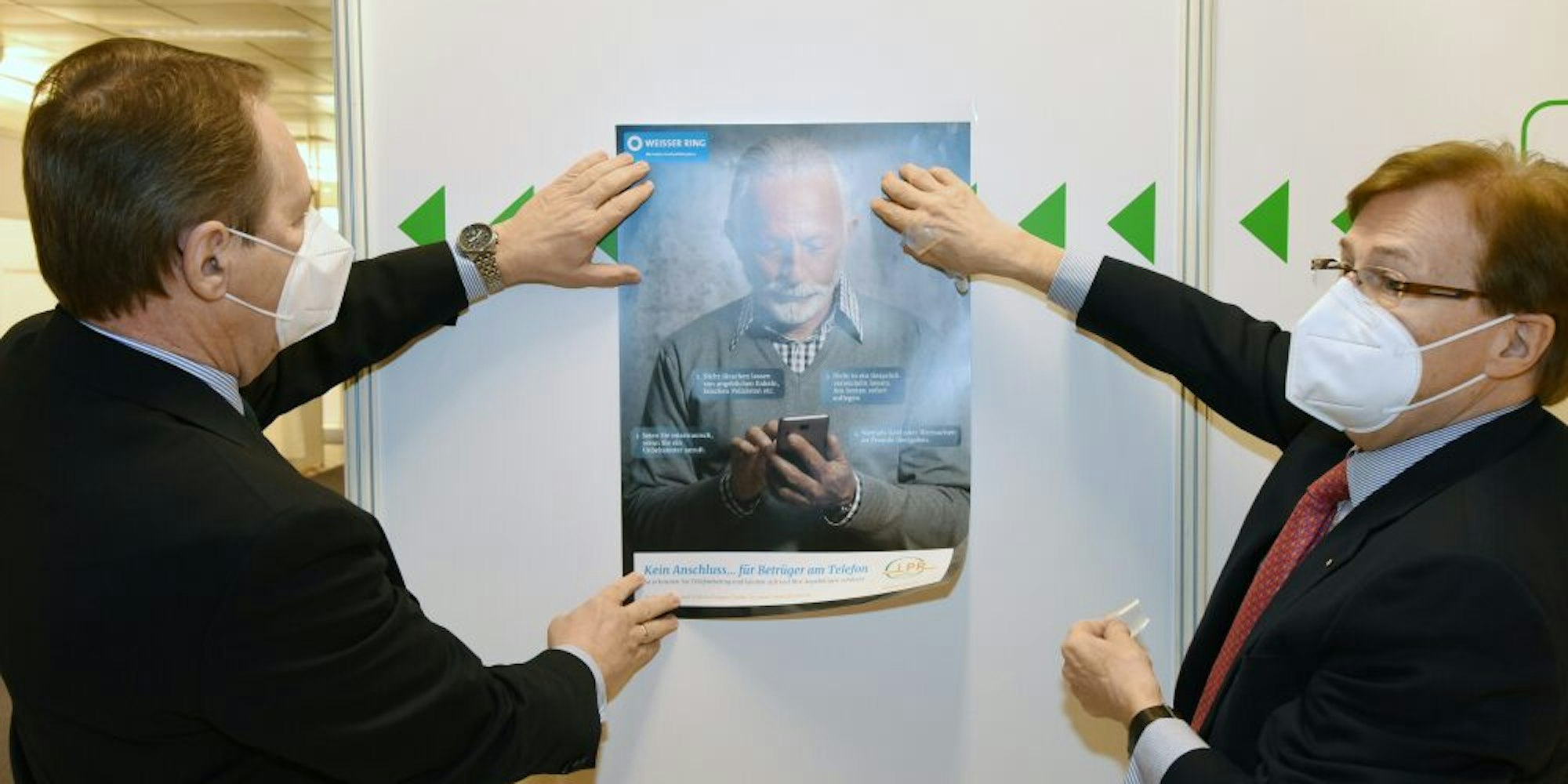 Mit Plakaten und Broschüren möchten sie gemeinsam auf die Aktion „Kein Anschluss... für Betrüger am Telefon“, initiiert vom Weißen Ring sowie dem Landespräventionsrats, aufmerksam machen. „Die Impfzentren sind eine einmalige Gelegenheit, Senioren zentral zu erreichen“, betont Biesenbach.