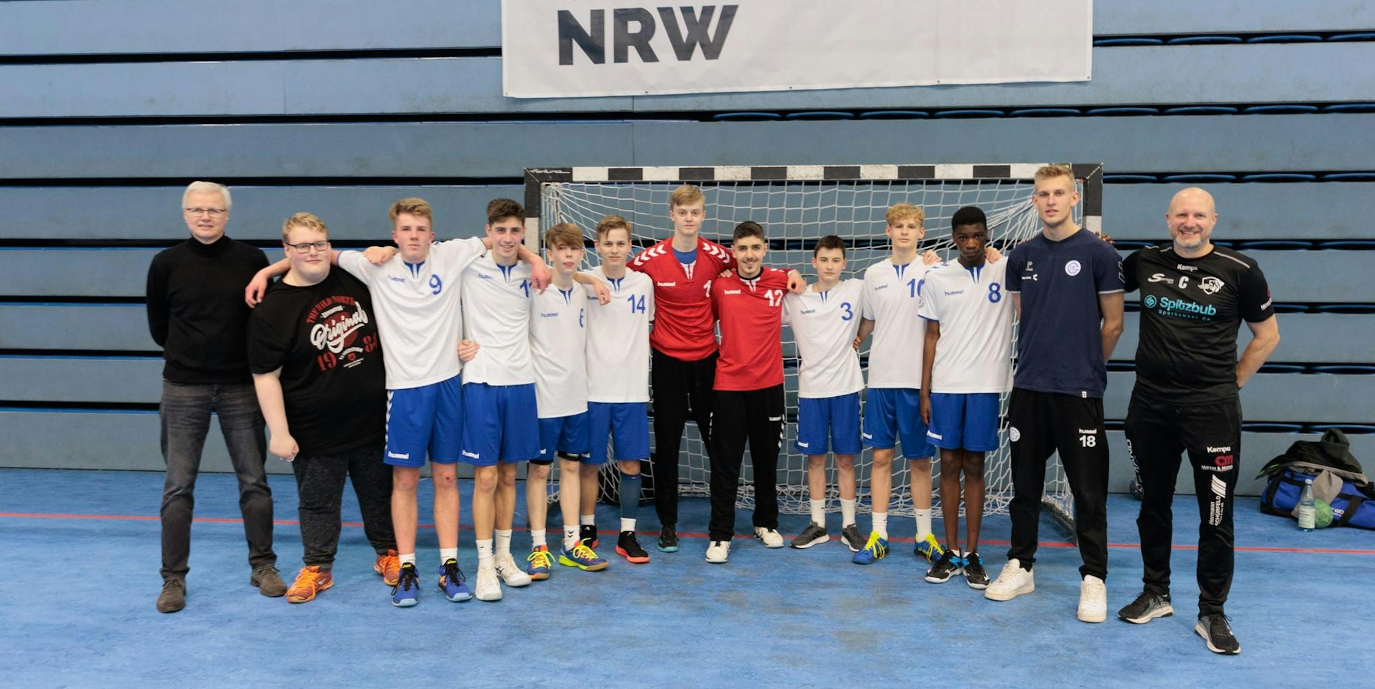 Bei den Jungen trat am Mittwoch nur die Gesamtschule Marienheide als oberbergischer Vertreter in der Wettkampfklasse II (Jahrgänge 2005 bis 2008) an und hatte den Fanclub mitgebracht. Die Trommel-AG der Schule und ehemalige Spieler der Marienheider Handballmannschaft, darunter die VfL-Spieler Bruno Eickhoff und Mathis Häseler, feuerten ihr Team kräftig an.