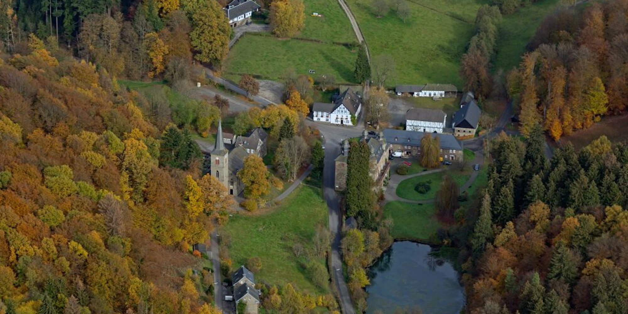 Rechts unterhalb des Schloss-Hotels in Gimborn soll eine Eventscheune u.a. für Hochzeiten gebaut werden.
