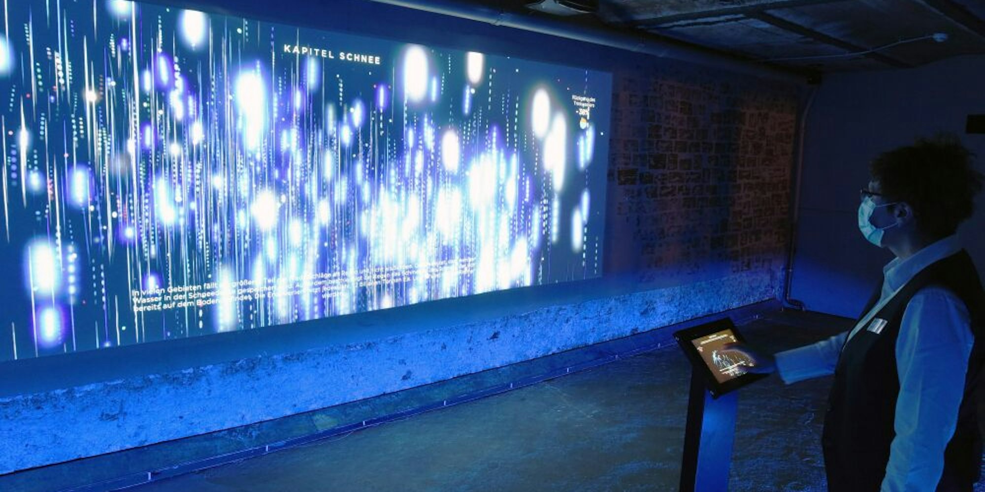 Im Turbinenkeller zeigt die Installation der italienischen Medienkünstlerin Cristina Tarquini, wie sich die Erderwärmung auf den Wasserkreislauf auswirkt.