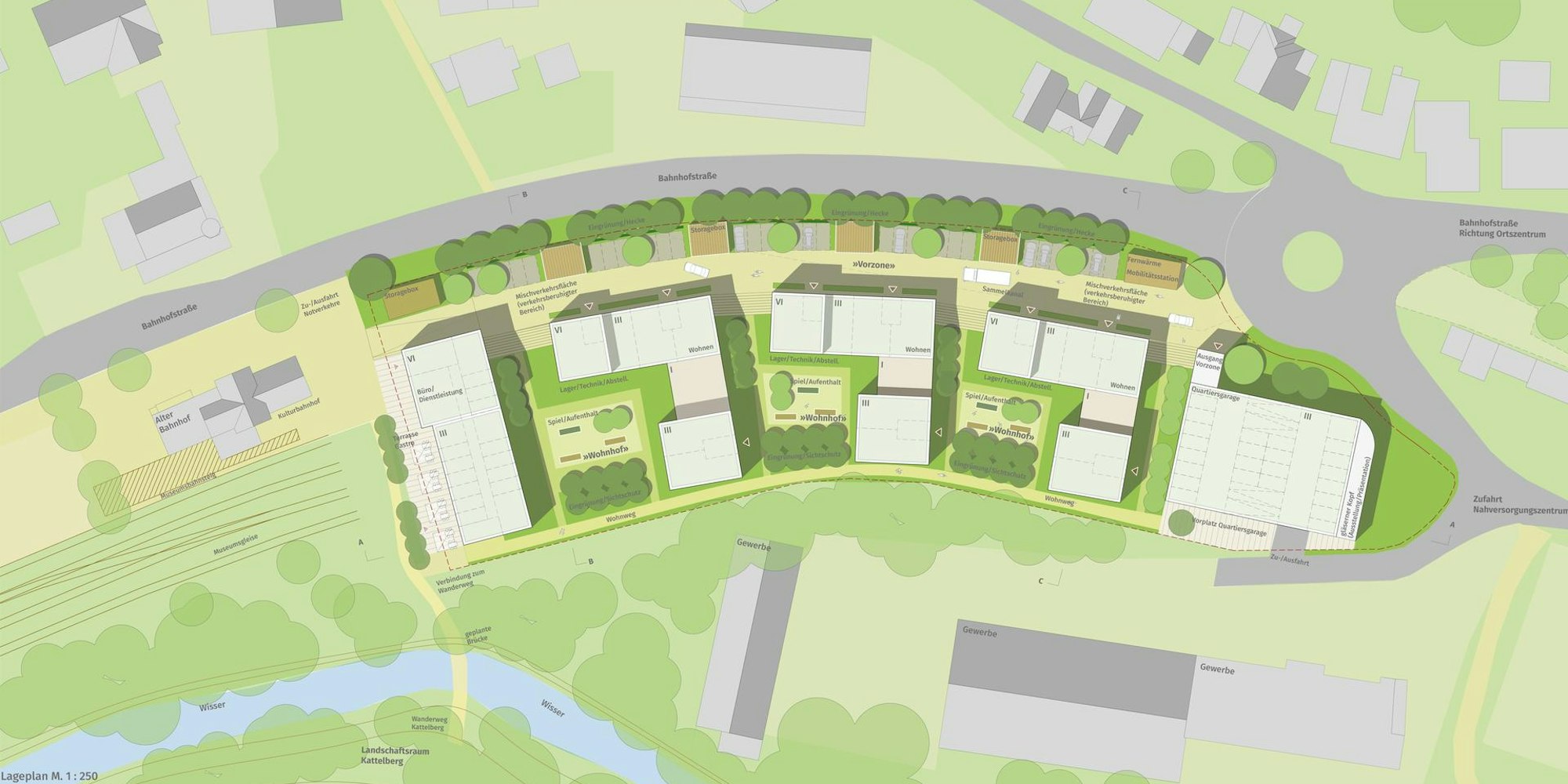 Die Pläne für den Wohnpark, die jetzt vorgestellt wurden, sehen auch Gastronomie und Gewerbe vor.