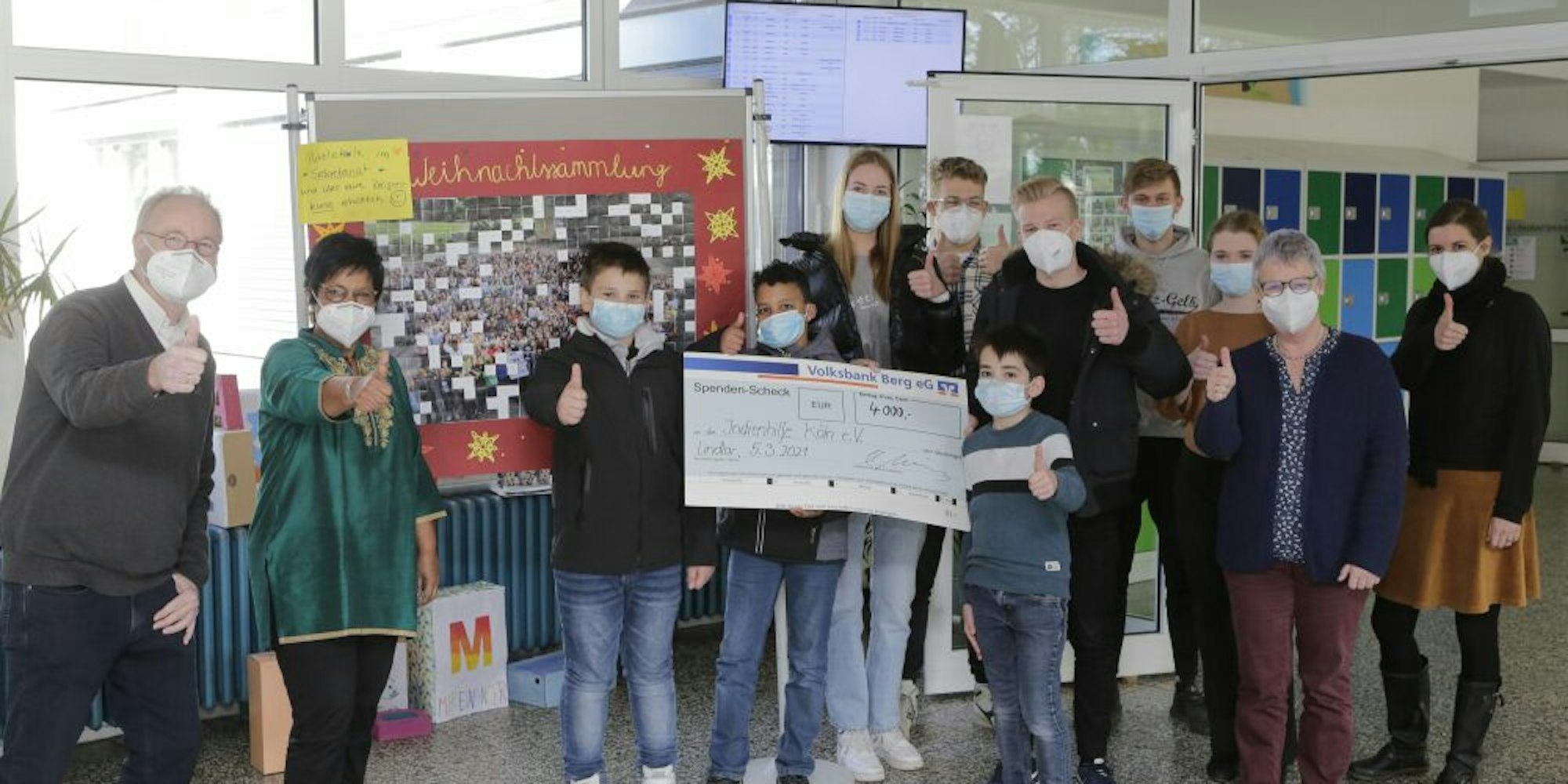 4000 Euro übergaben die Schülerinnen und Schüler des Gymnasiums Lindlar an die Indienhilfe Köln, ein anonymer Spender will die Summe nun noch verdoppeln.
