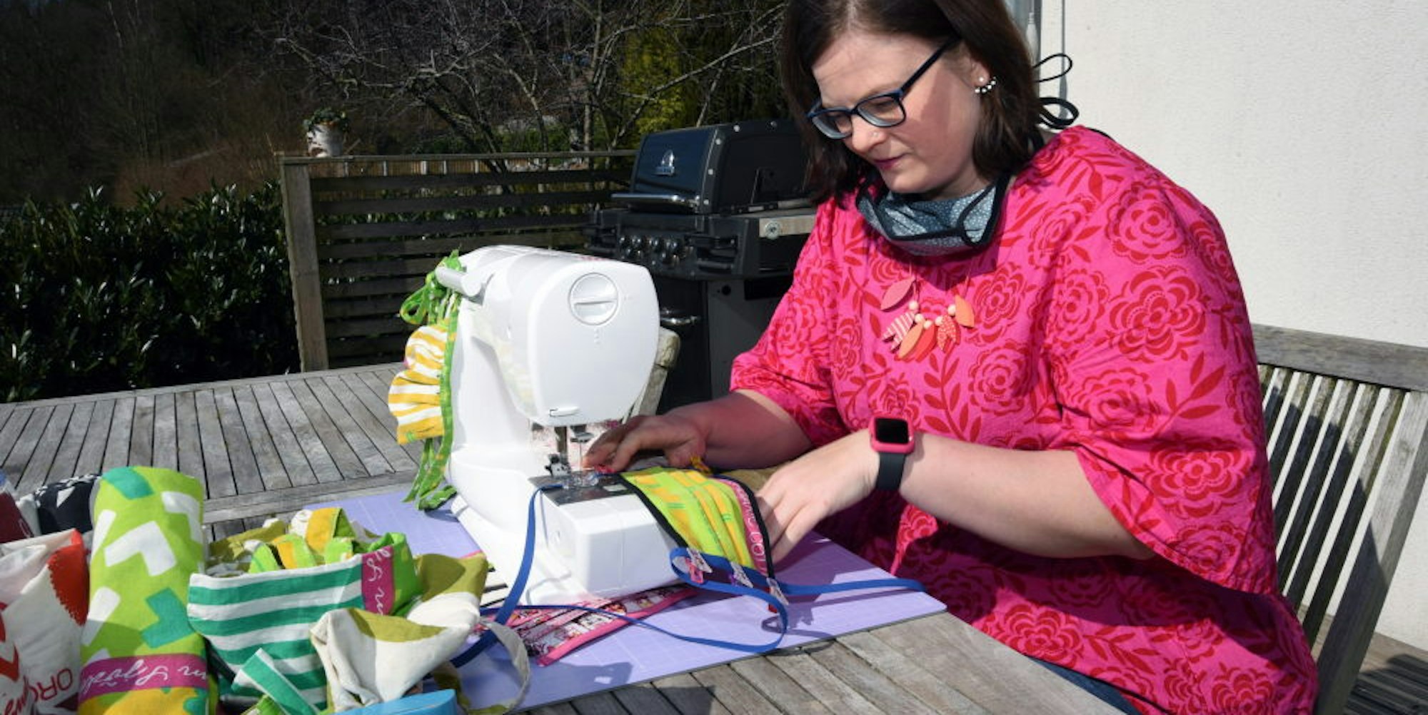 Mit dem sogenannten Upcycling kennt sie sich Neufurth als geübte Näherin aus: Aus Stoffresten stellt sie Kleidungsstücke an der heimischen Nähmaschine her. Vor gut einer Woche stieß sie im Internet auf ein Schnittmuster für eine Mundschutzmaske. Schnell entstand die erste aus einem ungenutzten Baumwollbeutel. Sie postete das bunt gemusterte Ergebnis im Internet – und erntete positive Reaktionen.