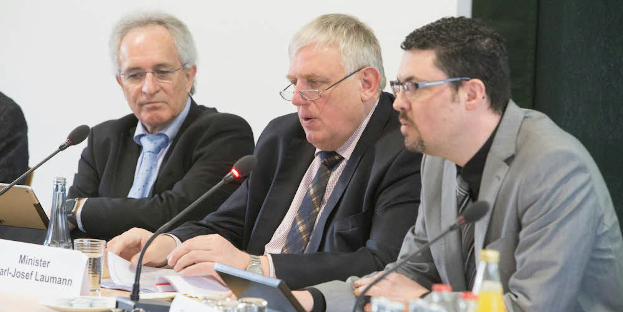Die Diskussion mit dem Minister (Mitte) moderierte Prof. Dr. Wolfgang Goetzke vom Verein Gesundheitsregion Köln/Bonn.