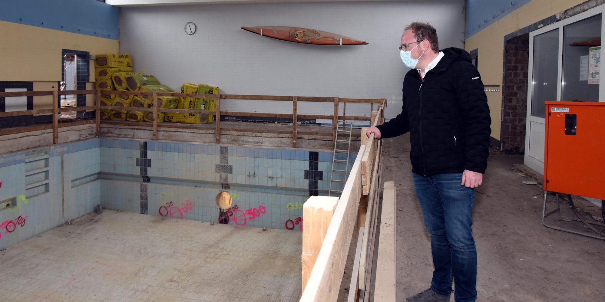 Morsbach – „Springen vom Beckenrand verboten“, mahnt ein Schild an der Wand. Doch wäre Springen ohnehin gerade keine gute Idee: Wasser schwappt im Morsbacher Hallenbad schon lange nicht mehr. Denn dort wird hart geschuftet. Das Bad ist ebenso Teil des Bürgercampus wie auch die Leonardo-da-Vinci-Sekundarschule. Und auch da sollen schon bald üppige Bauarbeiten starten. Insgesamt rund 16,2 Millionen Euro kann die Gemeinde Morsbach für ihren neuen Campus ausgeben. Dieser gehört zum Integrierten Handlungskonzept (InHK) für die Ortsmitte, für die Projekte fließt Geld aus den Förderkassen von Bund und Land und verschiedenen Programmen mit Quoten zwischen 50 und 90 Prozent.