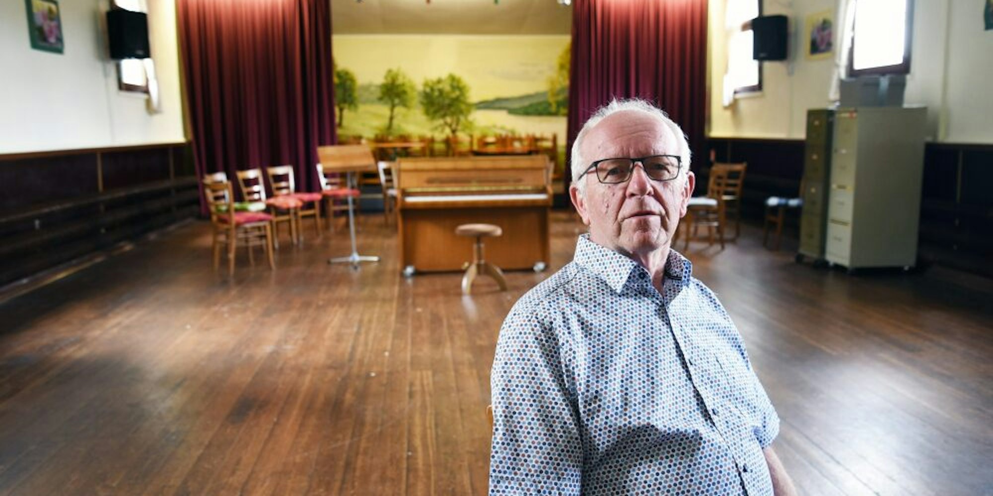 Vorsitzender Erich Berges blickt wehmütig in den Saal des Sängerheims. In der Mitte steht noch immer das Klavier, an den Wänden hängen Urkunden und Ehrenteller aus vielen Jahrzehnten. Als die Linger 2003 ihr Hundertjähriges feierten, zählte der MGV 30 Sänger.