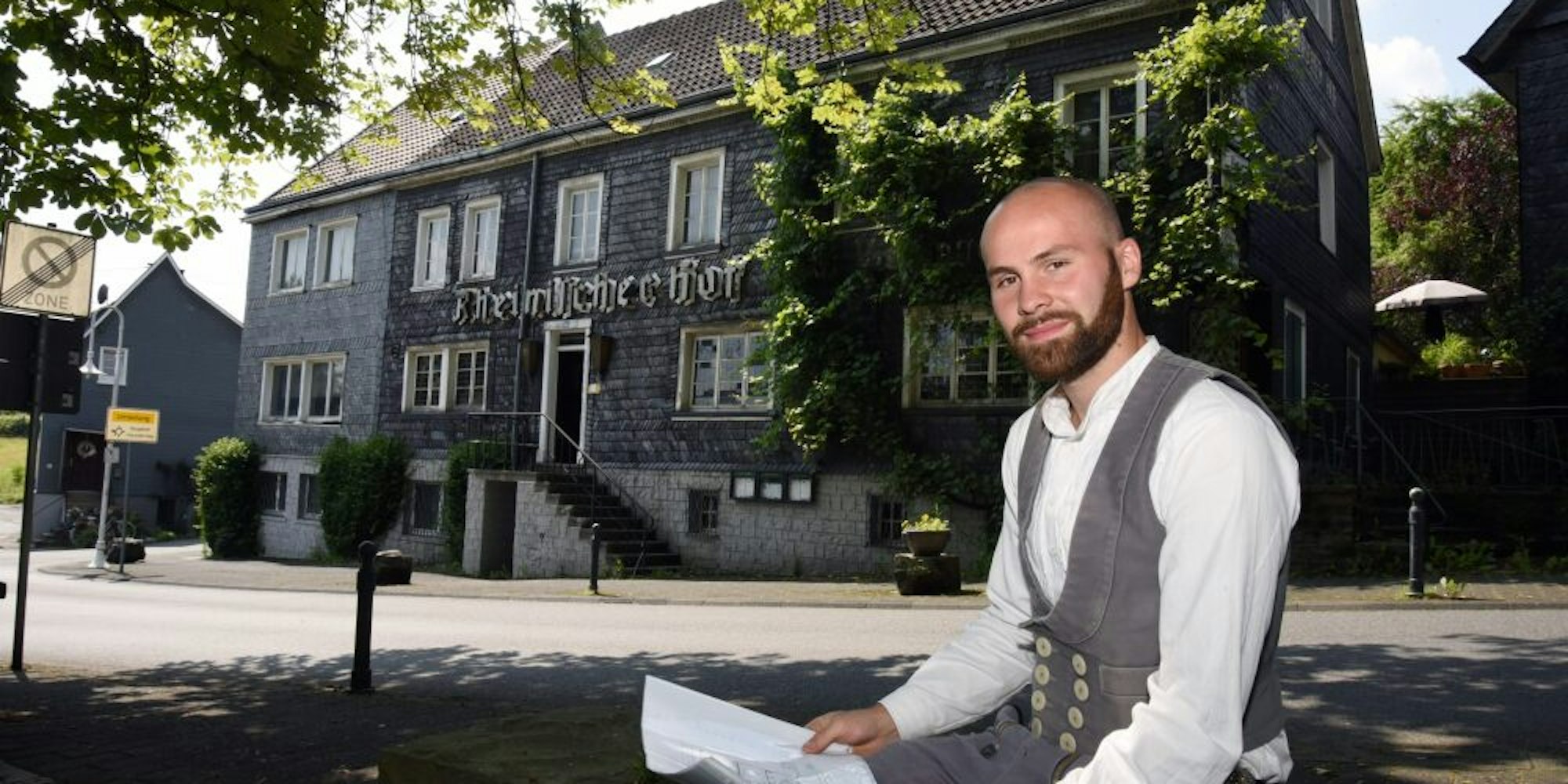 Die Bausubstanz sei gut, bis auf den an der Rückseite angebauten Treppenturm, erzählt er beim Rundgang. Die Naturschieferfassade wird erhalten. Sogar der Schriftzug „Rheinischer Hof“ und der Name „Gerhard Vierkötter“ auf dem Schiefer wird von Zielenbachs Mutter Sabine restauriert – sie ist Malermeisterin. Der neue Besitzer weiß, wie sehr der Name mit dem Gasthof verbunden ist, und er will das wertschätzen.