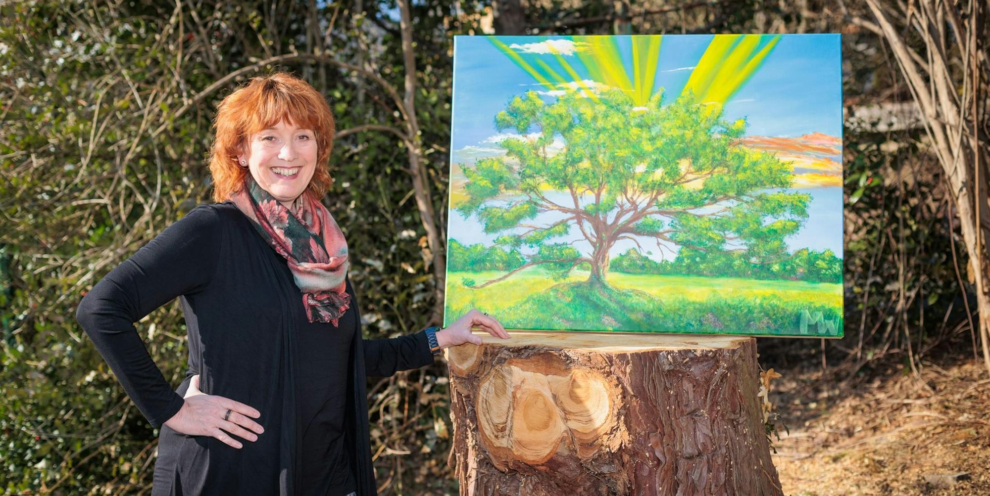Seit diesem Jahr ist Marion Willmanns Mitglied des Morsbacher Kunstvereins „kunst-werk-66“. Sie malt farbenfrohe, realistische Bilder in Acryl, möchte mit ihren Motiven Hoffnung schenken und ein Lächeln auf die Gesichter der Betrachter zaubern. Und manchmal, so wie bei dem großen grünen Baum des Lebens, gibt es sogar ein eigenes Märchen dazu, in dem die Sängerin, Autorin und Malerin sich Gedanken zur Geschichte der Mutter Erde gemacht hat. Mit Märchen und Bild hat sie gerade an der Ausschreibung des Kultur-Sonderpreises des Kreises „Kunst und Kultur in Bezug auf Corona“ teilgenommen.