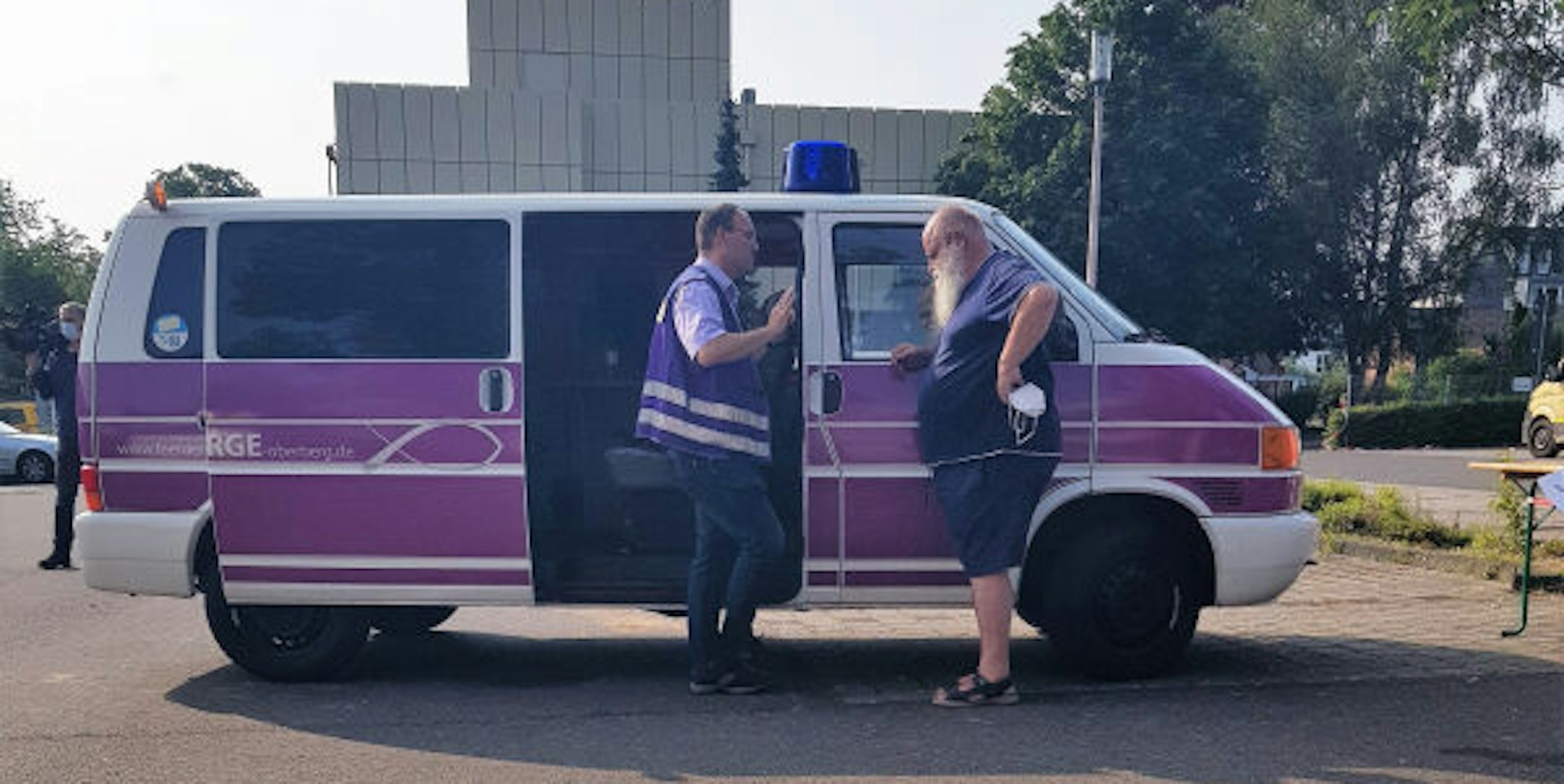 In das von der Flut betroffene Blessem fahren Oberbergs Notfallseelsorger in dieser Woche täglich mit ihrem Bus.