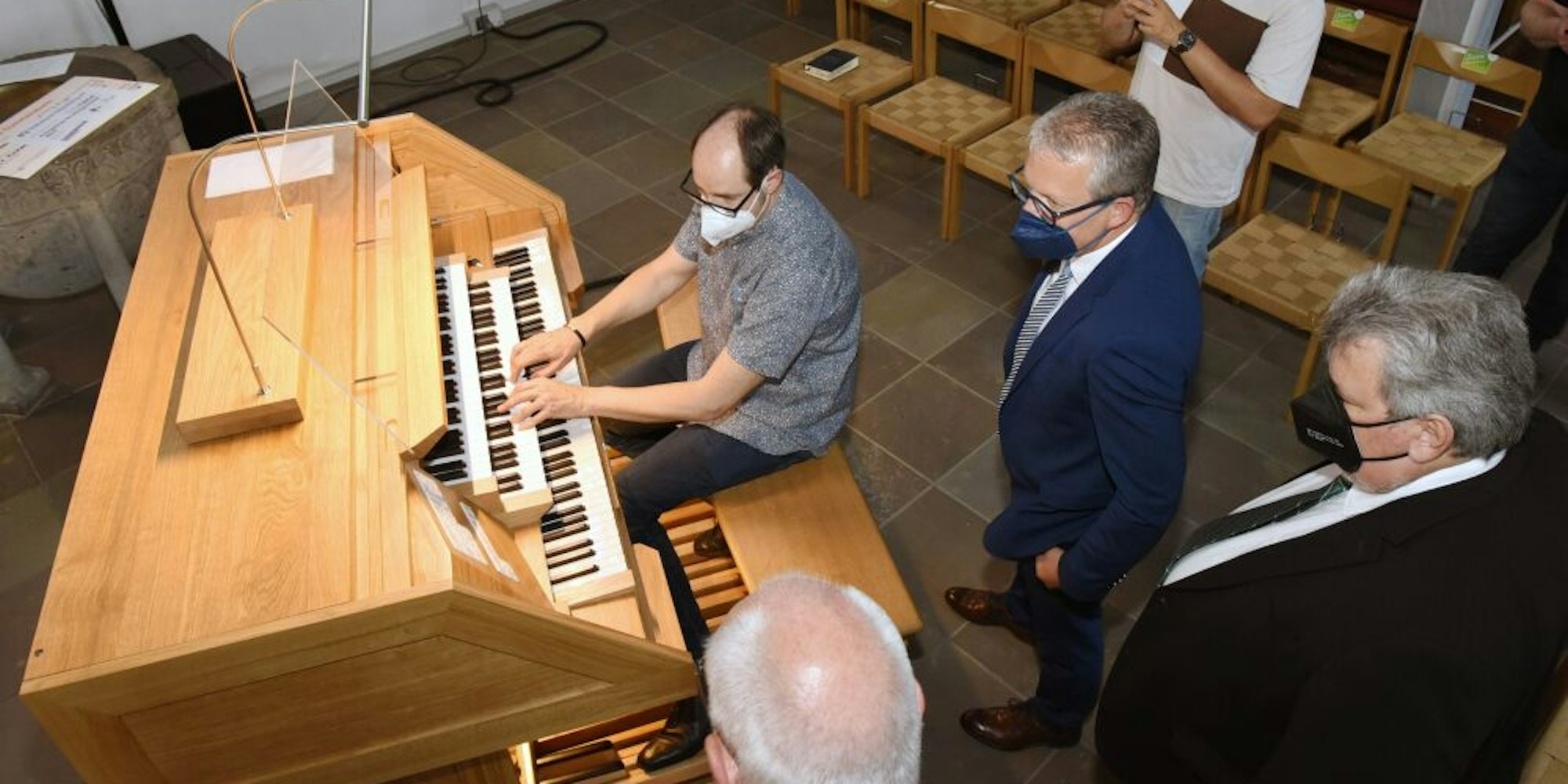 Es spiele sich aber schon jetzt deutlich angenehmer als an dem alten Tisch, der weiter in Funktion bleibe. Seit der Lieferung an Pfingstmontag richtet Müller-Ebbinghaus das Gerät ein: „Es ist schwierig, die Balance zwischen einer vollen und einer leeren Kirche zu finden, um eine optimale Klanglichkeit zu erreichen“, erklärt er.