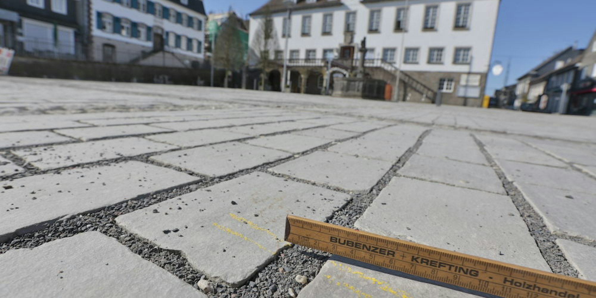 An vielen Stellen auf dem Marktplatz sind die Fugen zwischen den Grauwacke-Steinen entweder zu breit oder zu schmal.