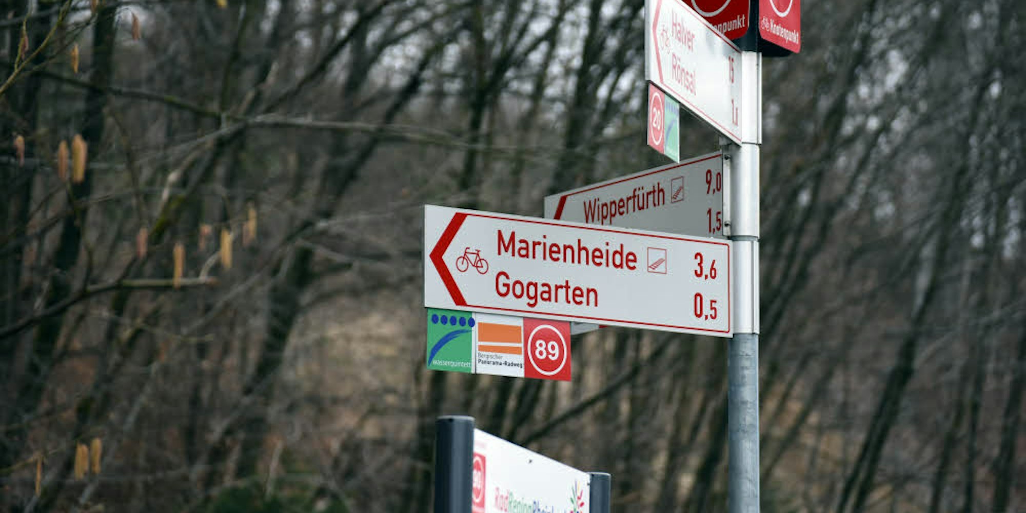 Sie überprüften etwa die Beschilderung des sogenannten Knotenpunktsystems der Rad-Region Rheinland, das auch im Bergischen eingeführt wurde: Die Knoten sind gekennzeichnet mit roten Schildern, auf denen weiße Zahlen gedruckt sind. So können Radler von Knotenpunkt zu Knotenpunkt fahren, ohne sich Orte und Kilometerangaben merken zu müssen.