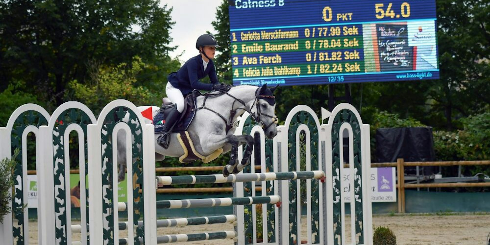 Trotzdem war das Turnier so etwas wie eine Initialzündung. Die junge Wipperfürtherin legte ihre Angst ab, entwickelte sich rasant, und hat sich drei Jahre später auf ihrer Schimmelstute Catness für das Finale der Weltcuptrophy qualifiziert. Im belgischen Mechelen gehen nach Weihnachten die besten 20 Ponyreiterinnen und -reiter an den Start. Jonna Esser ist eine von nur zwei deutschen Reiterinnen und steht im Ranking auf Platz drei. In Dänemark und Lyon hatte sie sich auf Catness qualifiziert.