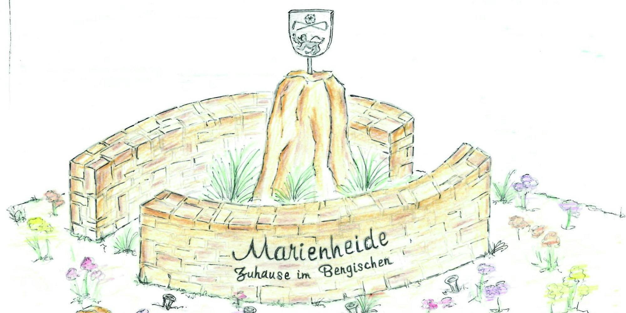 Inmitten einer bunten Bepflanzung auf dem Kreisverkehr, sollen zwei Mauerelemente aus bergischer Grauwacke – leicht gerundet, in Form einer Staumauer – gebaut werden. Darauf soll der Schriftzug „Marienheide – zuhause im Bergischen“ auf die Gemeinde hinweisen.