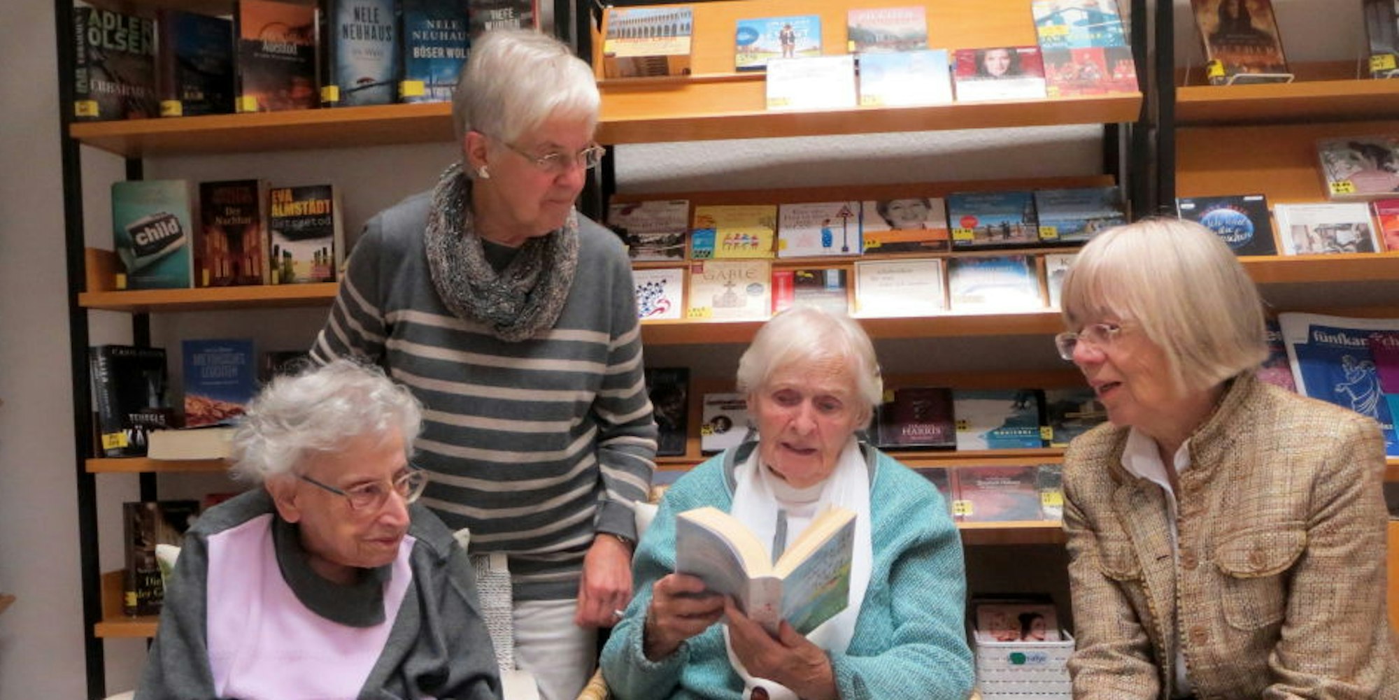 Der Evangelischen Gemeindebücherei in Waldbröl und dem Lesen ein Leben lang eng verbunden sind die Ehrenamtlerinnen (v.l.) Angelika Dorlaß, Barbara Schumacher, Eva Breidenbach und Ellen Bertrams.